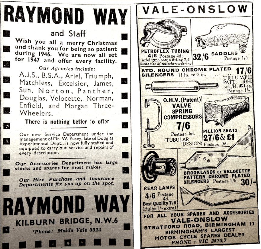 “TO SAVE FUEL, Veloce are now working a five-day week. On Saturdays, therefore, no correspondence can be dealt with, nor orders taken in or despatched. In general, Velocette owners are advised to order spares through their nearest Velocette agent, and not with the firm direct. This avoids delay.”