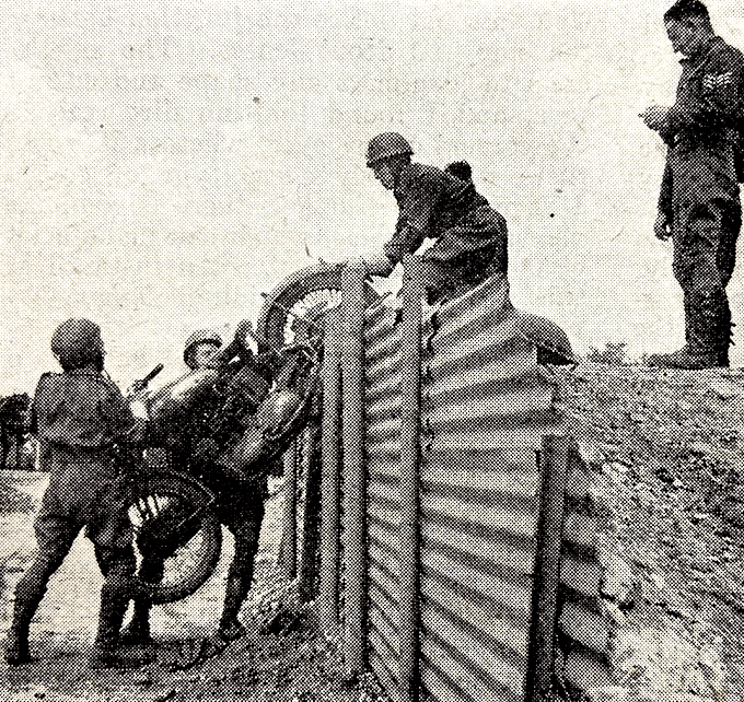 “AMONG THE COMPENSATIONS for an exile in Belgium are couponless petrol and food rationing which is so lax that it might just as well not exist. To a motor cyclist these compensations are great. He can go where-ever he likes whenever he likes—and can be sure of good meals when he gets there. The other day I set off from the seat of my exile—Courtrai, in West Flanders—on my 350cc Ariel acquired from the British Disposals Commission (Great Missenden to you). The Ariel is a grand little machine; and, though I don’t suppose I shall ever meet him, I shall always think kindly of its last owner, some RAF DR, for giving it the care he did. Should he read this article he will recognise his former mount when I say that it had its name—’Joy’—tastefully painted on the head lamp mask. I headed northwards towards the sea, but this was to be more than a trip to the seaside. It was to be a voyage of rediscovery. I proposed to retrace mile by mile the route I had taken in 1940, when, hastily recruited with several other DRs from my regiment, I had been attached to the staff of General Montgomery, at that time commanding the Third Division. Our job was to ease the precipitate retreat of the Division, from the area of Lille to the beaches of Dunkirk. I joined my old route just outside Ypres, on the Poperinghe road. It was an insignificant cross-roads at which I had been posted with instructions to send the vehicles of the 8th Brigade straight on and those of the 9th Brigade to the left. The route from this point led down narrow country lanes for several miles. These had been chosen rather than the main roads for the retreat in order to escape the air strafing. The surface was bad, but the countryside was pleasant. It is only by keeping to the main roads in Flanders that you are left with an impression of ugliness. Once into the byways and the whole scene changes. No more straight-backed, narrow houses in glaring red and yellow bricks, their bare walls plastered with advertisements. Here there are rambling old farmhouses in mellowed brick nestling in their poplar spinneys; lush fields of barley, flax and clover; wide meadows and grazing cattle. Soon I rejoined the main road to the coast. I passed through Oostvleteren, where Monty had for a short while established his headquarters. A colleague and I had been sent off on a job from here five minutes before it was heavily shelled. I heard afterwards that several of the staff had been either killed or wounded. Perhaps it had just been a coincidence that the HQ had been shelled so soon after being established. On to the pleasant old town of Furnes, where I was served with an excellent lunch in a café overlooking the Grande Place. Furnes at the time of Dunkirk was on the edge of the perimeter, and some very heavy fighting took place in and around it. To-day it was quiet and peaceful, slumbering in the June sunshine. From here I started off on the last lap of my pilgrimage—to the little hollow in the dunes where Montgomery had established his last headquarters and where he had personally ordered me back to my regiment (who were now gunners turned infantry, and defending the eastern flank of the beach-head). I tried to find the two sandhills rising out of the flat meadows near Ostdunkerque. That is, to most people they would have been just two sandhills; to me, and perhaps a hundred others, they were Fort Henderson and Fort Kennedy. After a long search I found them. They lay, as I had remembered them, at the end of a long gassy track, with an old Flemish fisherman’s cottage hard by. Two wide-eyed Belgian children watched me skid across the sand and park my machine. I climbed to the modest summit of Fort Kennedy and looked around. I’m not sure what it was I expected to find, but