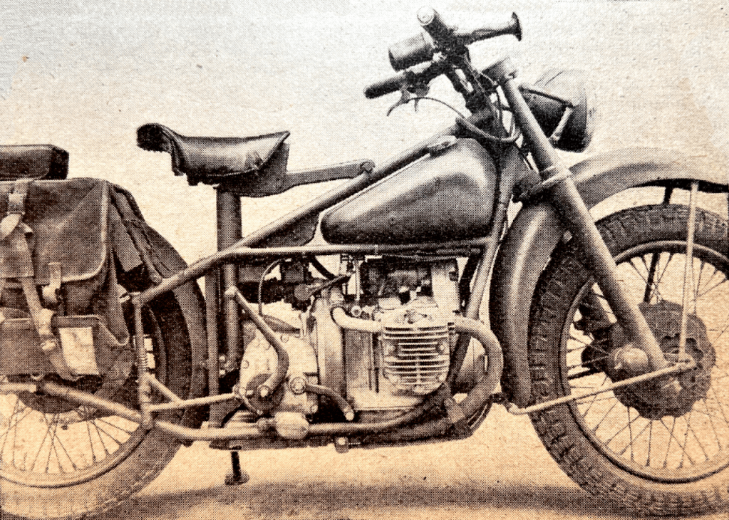 “AS A VERY KEEN enthusiast in civilian life you can imagine my feelings when I was put in charge of the Inspections Repair of most of my Company’s motor cycles. What more could an enthusiast want but to be steeped in motor cycles every day? We have every one of the Army models on our strength so have plenty of opportunity of studying the good and bad points of each make. One thing stands out a mile—electrics certainly need redesigning. The number of batteries, dynamos and voltage regulators required to keep machines on the road is terrific. To find a machine which charges is an exception. With girder type forks, spindles and bushes constantly require renewing. The advent of the Teledraulic fork is a boon in this respect. It is peculiar how each make has its faults which crop up in every model, and one wonders how much Mr Manufacturer tests his models not to have corrected them before thousands are made. A lot can, of course, be put down to the terrible condition of the roads over here. Oh! Why has not that lovely Triumph Twin got shaft drive? What a bike if it had! And what a boon the Enfield neutral-finding device is. I am sure in a few years British motor cycles will he at the top for design and performance—a position they held for so long.