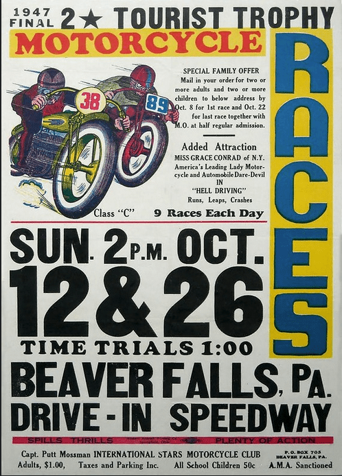 SEEMINGLY WELL-INFORMED US sources indicate that during the 1930s Hollister had hosted AMA sanctioned races organised by the Salinas Ramblers MC. Spectators participated in the ‘Gypsy Tour’ organised by the AMA and, as attendance grew, the Memorial Day races became as important to the local economy as the Hollister Livestock Show or the Hollister Rodeo. The races were discontinued after America’s entry into the war. When they returned in 1947 local merchants welcomed the event. Many more motor cyclists than expected poured into Hollister and things did get out of hand. About 60 riders were treated for injuries at the local hospital; 47 were charged with minor offences such as public drunkenness, disorderly conduct and reckless driving; most of them were held for only a few hours. There were no destruction of property, no arson, no looting; no citizens were harmed. On the Sunday 40 California Highway Patrol officers arrived with threats of tear gas; the motor cyclists went home. A City Council member stated, “Luckily, there appears to be no serious damage. These trick riders did more harm to themselves than the town.” It couldn’t have been that bad, five months later the town agreed to let the AMA and the Salinas Ramblers host the races again. But the San Francisco Chronicle used the headline “Havoc in Hollister”. Legend has it that he AMA released a statement saying that they had no involvement with the Hollister riot, and, “the trouble was caused by the 1% deviant that tarnishes the public image of both motorcycles and motorcyclists” and that the other 99% of motorcyclists are good, decent, law-abiding citizens”. The AMA denies saying any such thing but myth has overtaken reality and ‘bikers’ around the world wear 1% badges for no apparent reason. Six years later Marlon Brando and Lee Marvin starred in The Wild One which helped spread the image of the ‘outlaw biker’. Films, books, magazine all jumped on the bandwagon, doing incalculable harm to the image of motor cycles and motor cycling. Enough said; let’s get back to motor cycling.