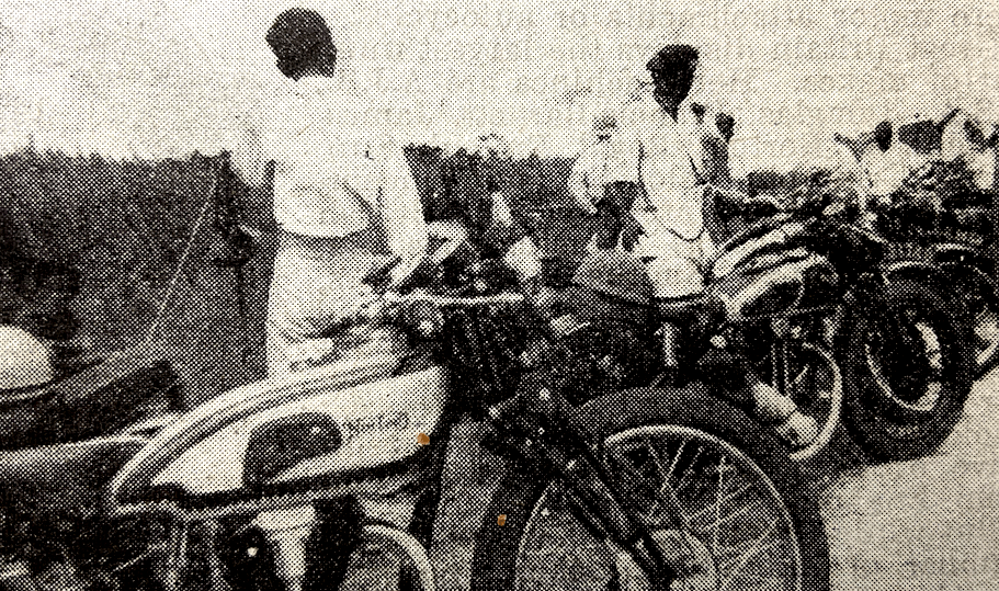 “OFFICIAL RIDERS OF Norton machines in 1949 trials and scrambles will be GE Duke, AJ Blackwell and RB Young, solos, and AJ Humphries, sidecar.”