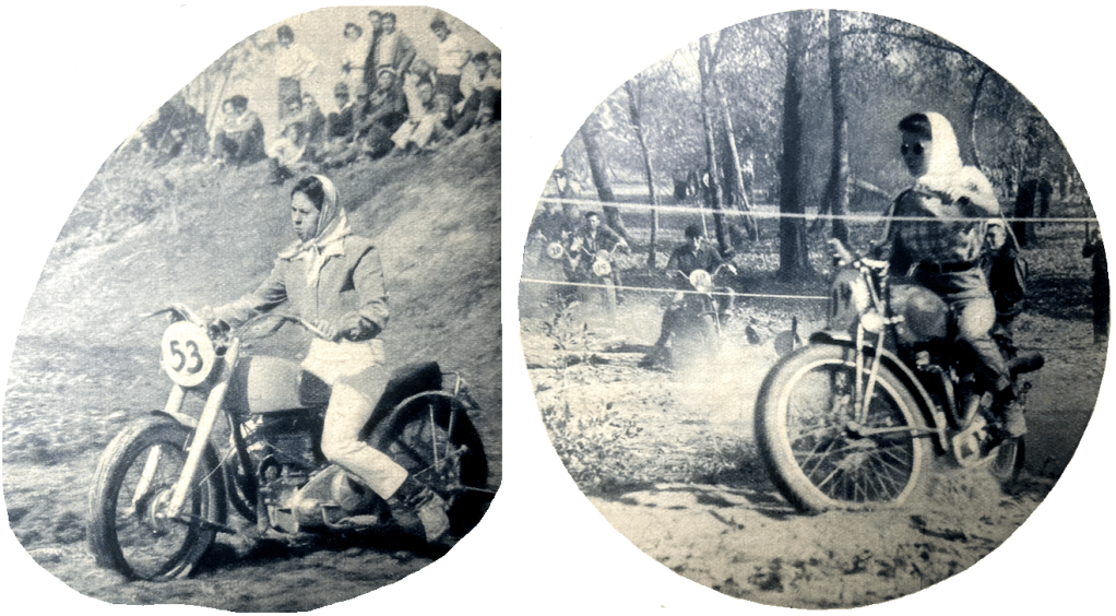 “AS AN AMERICAN feminine enthusiast, I have felt that readers might be interested to hear about what we girl motor cyclists do here in America. I have often been inclined to answer letters appearing in The Motor Cycle from girls who want motor cycles, but who are told by some all-knowing male that ‘she’ is too small and light to ride. This always tickles my funny-bone, because the males are, of course, referring to English machines, which, by American standards, are considered to be in the ‘lightweight’ class. This is in comparison with what, out here, they call our big ‘honkies’—in other words, our 74 ohv Harleys. It is true that the majority of girls riding in Southern California have British machines, but this is not because they cannot handle the bigger ones. It is because of the type of riding they indulge in—to the almost complete exclusion of travelling, favourite pastime of the Middle Western and Eastern riders. I have lived in California only a little over two years, for I was at Rhode Island, on the eastern seaboard, up to then. I began riding with my husband before we were married in 1932. Although he taught me to drive a sidecar, I never got a licence to drive until 1939, as we were too broke to have two machines until then! I am barely 5ft tall and weigh about 120lb. At first I had trouble in reaching the ground with my feet with the big machines. This made it awkward to learn to ride. At that period there were hardly any British models over here, and we used to stare at them as something quite incredible. The only small American motor cycle at that time was a 500cc V-twin. I got one, and, after barely learning ‘to make it go’, took off on a trip to Canada, on to Milwaukee US, and back home via the World’s Fair in New York. The machine seized up on me regularly; the generator belt broke a dozen times; I was using a quart of oil to a hundred miles; and I fell off with monotonous regularity on a 500-mile stretch of loose gravel encountered in the wilds of Canada. Still, I thought it was a marvellous vacation, with little rain to prevent my sleeping out; and I spent only $40 for a fortnight’s 3,500-mile trip. However, by the time I got home I was dead sick of such a small machine, and I informed my husband that I wanted a Harley 45 right away! Money was still short at that time, so I thought I’d have to wait until next Spring. But, as usual, luck was with me. Fate, in the shape of a rather stupid driver, hit me while I struggled at the side of the road one night (trying to extricate the rear chain from the wheel where it had become lodged when the chain broke). My leg was broken. After a couple of months hospital, and a short time on crutches, I graduated to a cane, and we collected $1,500 and other damages from the man who hit me, and $650 from my own accident policy. Never had we had so much cash in