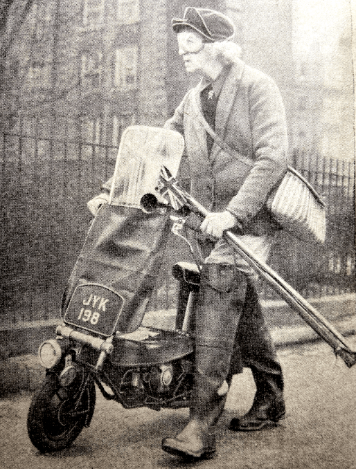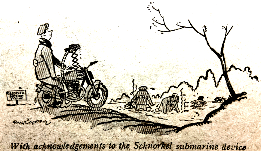 “I OWN A PRE-WAR 500cc single with a sidecar attached. Until recently I paid no attention to mpg. It was then brought to my notice that a 32-seater coach could get more mpg than my outfit. This roused me to action. I fitted a new Glug carburettor, which immediately trebled my miles per gallon. By now the bug had got me—I was not satisfied. I next fitted a Flim-flam atomiser. This improved my mpg by another 50%. I was happy with this state of affairs until someone pointed out that my cylinder needed sleeving. Since having this done, I find that I now gain petrol instead of using it. This has its drawbacks. If I do not take the precaution of starting a long journey with an empty tank, I am in danger of fire outbreak owing to the excess petrol spouting out of the filler cap hole. As I am not licensed to sell petrol, I intend piping this overflow to various dirty parts of the machine so that it will he self cleaning.