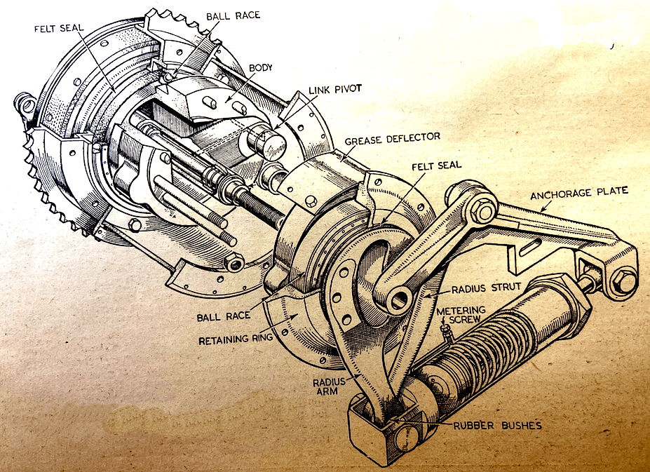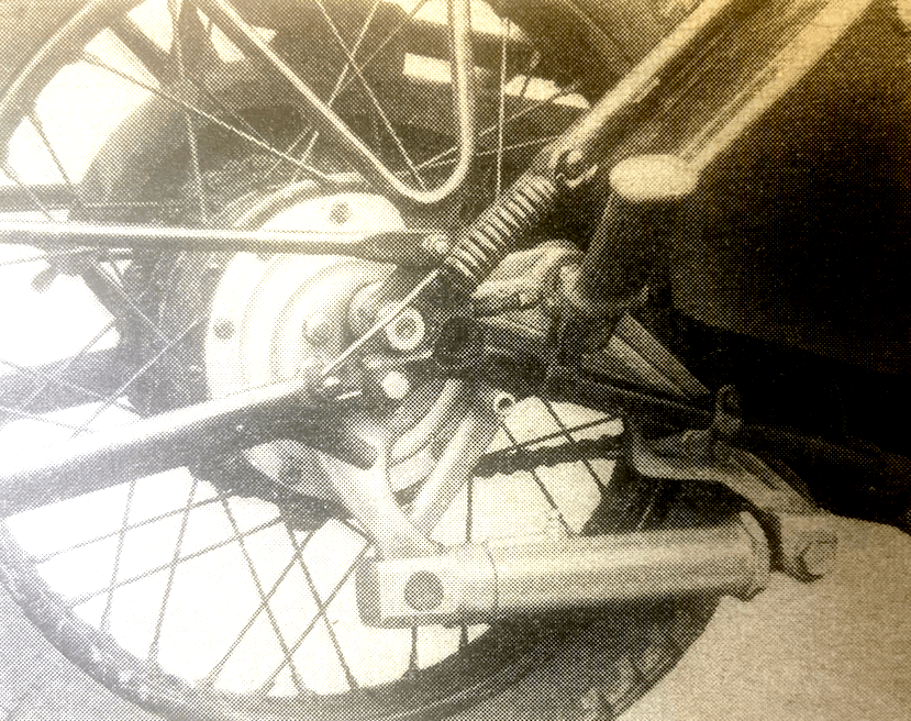 “READERS WILL RECALL an ingenious spring hub designed by Mr AT Clark…the suspension is now available as a proprietary unit. A light steel hub approximately 8in in diameter is spoked into the wheel in the orthodox manner. Bolted to the left-hand side is the brake drum which carries the sprocket; on the right side is a light-alloy flange. Within the hub shell is a two-piece light-alloy body mounted on ball races of 5¼in external diameter; thus the body can move relative to the hub shell…Brake size is 7in diameter with ¾in wide linings. The shoe-plate is a light-alloy casting and a long torque arm is fitted; provision is made for the slight movement of the shoe-plate relative to the hub when the suspension is operating. Two inches of rear-wheel movement is permitted, and the variation in chain tension is negligible. The weight of the suspension system complete with brake and wheel is 39lb, or approximately 10lb above the average wheel and brake fitted to a standard machine. The suspension is sold as a conversion unit which includes the hub complete with all mechanism, the brake, sprocket and wheel; in other words, the standard wheel and brake is removed and the sprung wheel is fitted. Among the attractions is the fact that a purchaser can retain the standard wheel and refit it on selling his machine, with the idea of employing the Clamil wheel with his new model. There are two further noteworthy points. The pillion passenger enjoys the full advantages of the suspension and the mechanism does not hamper the fitting of panniers or other luggage-carrying equipment. Stronger springs are available for heavy-duty sidecar work. Experience on the road showed that this type of spring hub has much to commend it. All heavy road shocks are eliminated and the springing characteristics are particularly well suited to high speeds over bumpy surfaces. There is no pitching—not even on the type of concrete highway with regularly spaced expansions strips. During fast cornering the rear wheel remains in contact with corrugated-type surfaces and there is no tendency for the wheel to chop out. The springing is rigid laterally. Especially noteworthy is the extent to which rear-wheel braking is improved. The brake supplied as part of the conversion unit is progressive and powerful in operation. That apart, however, the greatest improvement lies in the manner in which the rear wheel, under the influence of the springing system, adheres to the road surface during heavy braking. Standard springs were fitted. These are of a strength calculated to be suitable either for a solo rider or for a rider plus a heavy pillion passenger. My impression was that the springing was on the hard side to give maximum comfort at low speeds over minor bumps and that at slightly higher, though not fast, speeds, wheel movement was inclined to be too lively…An experimental type of piston was fitted which provided no depression damping under impact loading as is the-case with the standard piston. Price of the Clamil spring hub complete is £29 10s. Manufacturers are Millars Motors, 363, London Rd, Mitcham, Surrey, under licence from Clamil Suspension.”