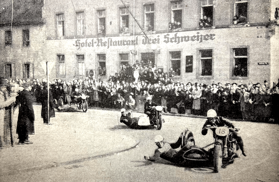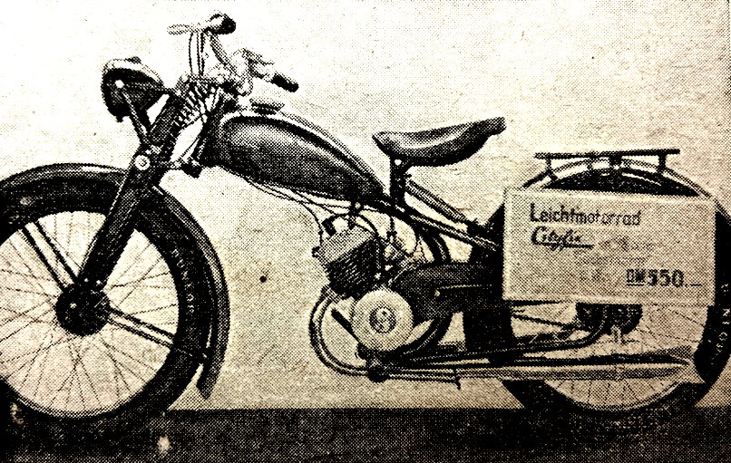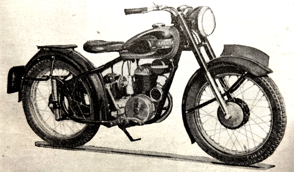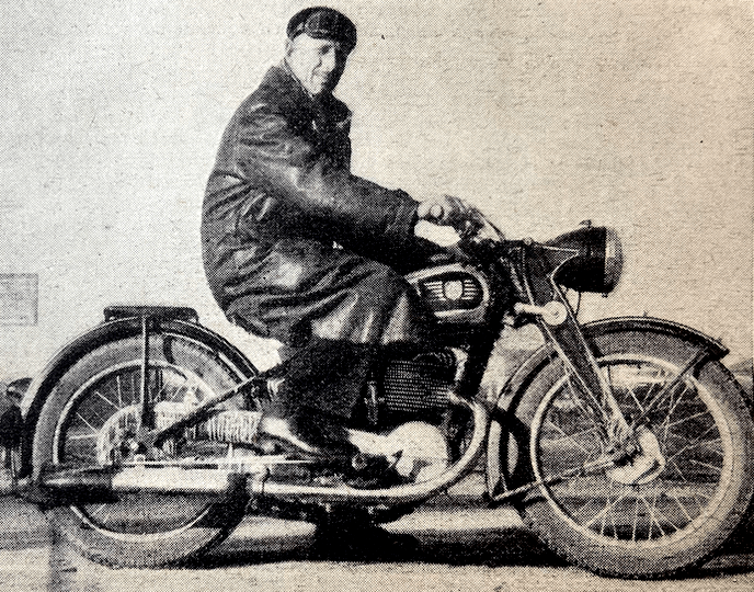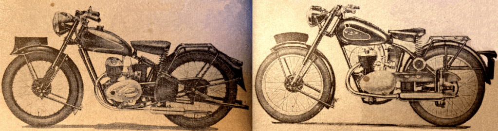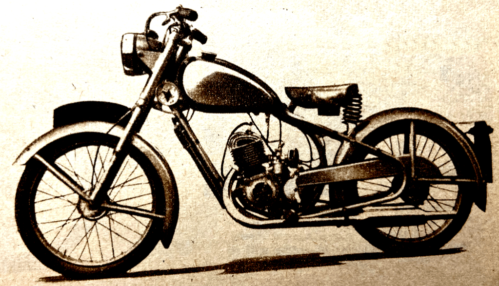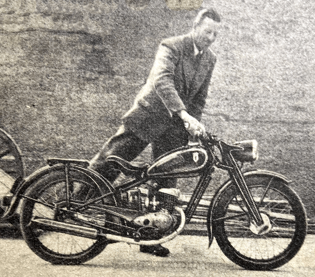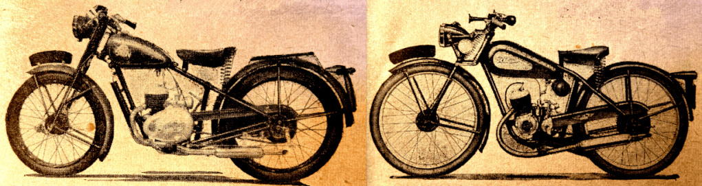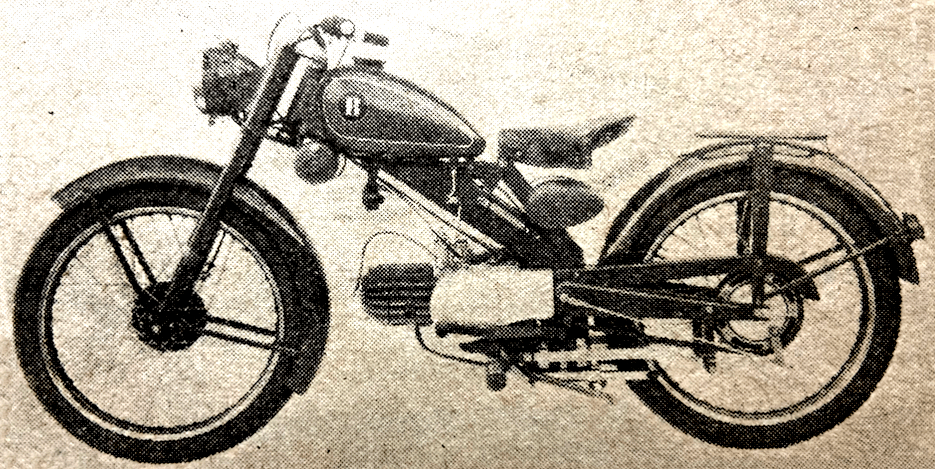 On this prototype model, there was even more than a fair share of engine vibration to add to the impression of dicing. No doubt this will be eliminated in the production racers. Whether it is or not, I give full marks to the whole scheme; it should very definitely result in new names coming to the fore. As they were remarking at the factories, the average age of the successful racing men in Germany to-day is high, just as it is in Great Britain. An altogether different type of machine is of course, the 125cc DKW. The weight, as it happens, is the same to a couple of pounds, ie, about 142. Various improvements have been made in this model. The wheelbase is longer, the tank is larger and incorporates the tool-box, a swing saddle is fitted and the front brake has been increased in size. The machine, I rode had covered rather more than 100 miles. I have had extensive experience with the 97.5cc DKW, which I regarded as the outstanding lightweight two-stroke of pre-war days. Indeed, it was a DKW of this size I used at the 1 Air-Landing Brigade demonstration that was followed by the adoption of ‘Flying Fleas’. Hence the ride on the latest RT 125 afforded interesting comparisons. The gear change on the new model was better than I recalled from the past, and one could use anything up to 40mph. in the middle of the three gears. This time there was foot change, and thus a quicker gear change was possible. While the 125cc engine had unusually little tendency to four-stroke and a 100% reliable tick-over, it could four-stroke, which is something the 97.5cc engine would not do. The small engine was also so smooth that one could term it ‘dynamo-like’, and with the larger unit there is some vibration high up the engine-speed range, though so high that one would seldom encounter it. When cruising around 40mph in top—which was easy in spite of a blustery wind—the engine was as sweet as the proverbial nut. Starting was delightfully easy, the brakes were excellent—yes, the DKW front brake calls for no heavy pressure on the lever—the clutch action proved to be first-class, and the general handling was very good indeed. About the only criticism of an exceptionally fine lightweight was that the rear chain guard clattered on rough roads—a more-or-less standard fault, it seemed, but easily remedied. Another of the non-secret machines was the new 250cc two-stroke Ardie, which is a mount with an aluminium cylinder and cylinder head, a frame of welded and bolted-up construction that incorporates sidecar lugs, a four-speed gear box, 3.25in tyres, a 50-watt Noris dynamo, a Pagusa swing saddle, a steering damper, and a neutral-indicator in the ferns of a lamp bulb. Maximum speed is 60mph or slightly more, but Dr. Venediger, managing director and famed designer, has not aimed at speed as such, but acceleration. Fuel consumption is given as approximately 95mpg. A similar machine of 350cc is being made. Girder or telescopic front forks are available. The machine I rode was a mileage-test 250 with the telescopic front fork. It was being worked on at the time of my arrival and had to be hurriedly built up. This was unfair to the machine and one can discount three faults that emerged during my trip: First, the engine cut out owing to the contact-breaker points having closed up; secondly, there was more than a ‘feel’ of transmission at 50mph—the rear chain was too tight—and, finally, a few hundred yards from the factory, on the homeward run, there was a shrieking noise from the rear of the engine-gear unit and the clutch ceased to function. However, in spite of its being a machine which the makers had been testing to destruction and of there having been no time properly to ready it for me, I learnt sufficient to be able to give a general impression of the model. Particularly for a 250cc single, the two-stroking was very good. The gear change, with the four-speed box, was easily the best of all the machines I rode on the 2,600 and more miles covered during my journeyings. Rear brake was excellent, but with the front brake it was necessary to use almost a vice-like grip of lever and handlebar to get much result. The plunger front fork did not give the impression of doing a lot. Very wide handlebars are fitted. These give a sensible angle for the wrists, but were a nuisance on full-lock turns; Both the acceleration and pulling power of the engine are extremely good, and the machine is sturdy and likeable. Finally, there was the 250cc two-piston two-stroke TWN. Like the 125cc engine I rode recently, the 250 two-strokes to a degree unknown to the average two-stroke owner, and, further, the tick-over proved to be 100% dependable. Another outstanding feature of the comparatively highly geared machine is the big-machine ‘feel’ it provides. Again it was a case of the brakes being good and not superlative. The machine would do about 100kph—62mph—with the rider sitting normally. As with other German speedometers I encountered, the needle tended to swing to and fro. With the engine’s excellent manners and the absence of any impression that one is handling a lightweight, the 250cc TWN struck me as a machine calculated to make a wide appeal. We can, I consider, do with more small cc machines that ride and handle in the manner of the big ones.'”