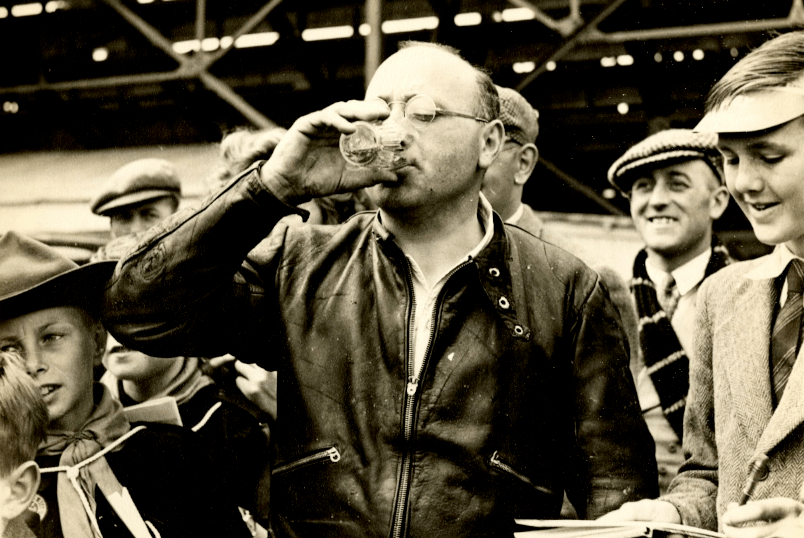 “MILWAUKEE MEETING: Paul Goldsmith of St. Clair Shores, Michigan, won the 15-mile national championship dirt-track meeting at Milwaukee, Wisconsin, USA. He came through during the last lap and won by a ‘whisker’ from E Beckman of Kalamazoo, Michigan. Goldsmith was riding a WR Harley and Beckman was on an Indian. Goldsmith also made the best time trial in 44.32 seconds. The race actually ran to 19 laps, as four laps were covered under the hold-position flag after Billy Huber fell during the eleventh lap; Huber escaped with bruises.”