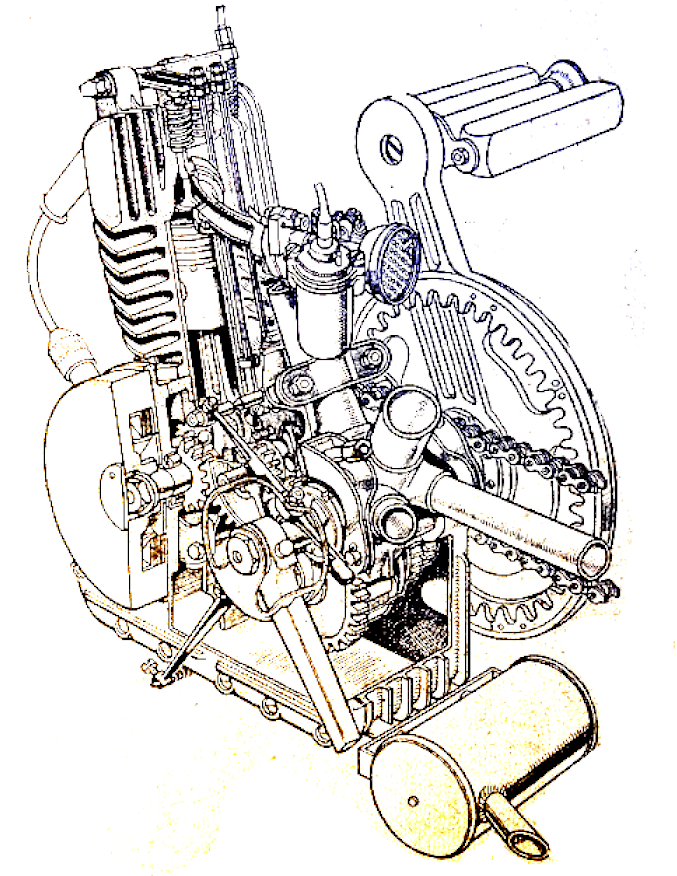 “THE TENDENCY of certain two-stroke engines to run backwards on occasion crops up in our columns periodically. The last mention of this winsome Scott habit has brought me the usual kit of stories. The trick seems almost-endemic with some readers, though I cannot recall its occurrence more than once in an experience covering half-a-dozen Scotts, and many thousands of miles. Here are some items on the curiosity. It is usually due to excessive ignition advance—rare with an engine in delivery tune, but prone to occur if an owner plays about with his sparking gear. With an over-early spark, it may happen when the engine is running slowly, as in a traffic hold-up, or when the kick-starter is used, especially with a hot engine. There is no very obvious aural clue as to which way the engine is running, though if there is an ammeter needle this may afford an answer on reverse. One enterprising owner cherishes ideas of rigging up an ignition which can be grossly over-advanced at will, for use with sidecar. The upper portion of its scale will be controlled by a separate lever marked ‘R’, which will be used to reverse the engine when he wishes to turn about in a narrow space or overshoots a planned stop.”—Ixion