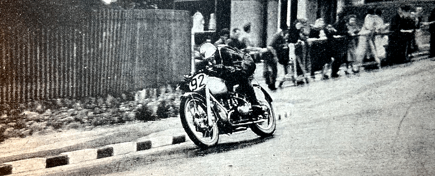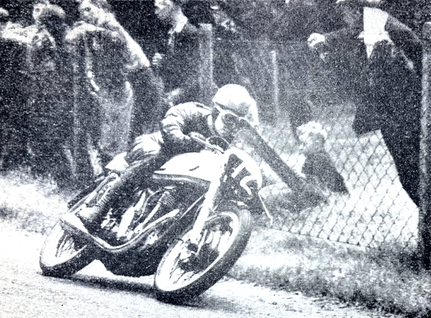 “FOR its first road race meeting to be organised under a national permit, the Aberaman Club last Saturday received a record entry of over 170. Chief honours of the day went to ST Barnett (Norton), J Surtees (Vincent) and AL Parry (Norton), winners of the 350, 500 and up to 1,000cc races respectively. During the 500cc race, Surtees set up a new lap record with a time of 51sec. The twisting, ⅞-mile circuit in Aberdare Park, which follows a natural road through the park, was well lined with spectators when the riders took their places on the grid for the first event—the 125cc race, which was run over eight laps. Weather conditions were near-ideal, with warm, still air and not very much sun; they remained so throughout the day.”