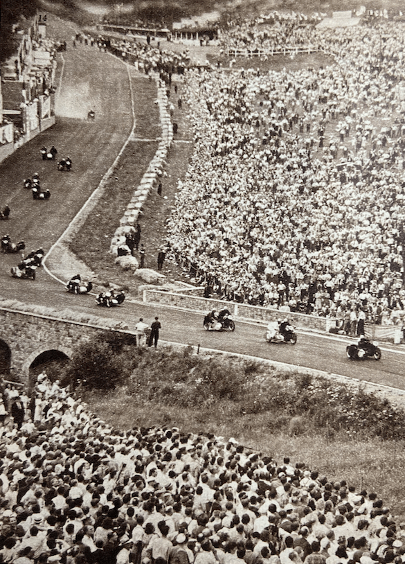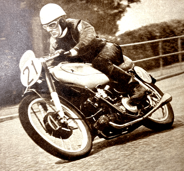 “WITHIN A MEASURABLE FUTURE Germany, the most formidable of our rivals, will be back in the fold, and will be thirsting to regain lost laurels. For the moment the threat from that quarter is limited. Arthur Bourne reports that the Gilera people agree with most of our home experts—the TT course wants far too much knowing to attract Continental riders; especially is this so when the 500cc class is concerned. Meier’s 1939 win did not torpedo that dogma—his blower made many mph faster than our best. But even the TT will not remain eternally sacrosanct. Our ‘small tracks’ are breeding young stars. There will be insufficient room for all the upcoming youngsters in the Norton, AJS and Velocette stables. By 1951-2 some of these boys may be offered opportunities to ride 500cc 4-cyl jobs of top-drawer rating in the Senior TT—Continental machines of either Italian or German manufacture. It is not merely our supremacy which may shortly be at stake. There could be some risk of our being outclassed. If we must accept the old adage, confirmed by AJS experience, that at least two years are needed to render a new design race-worthy under all the handicaps which hedge speed in Britain, preparations for our counter-thrusts cannot safely be delayed. In the past some of our aces—eg, Bob Foster and Stanley Woods—have succumbed to foreign invitations, just as the crack US stars ride ‘limey’ models to victory at Daytona. Nobody knows how far speed victories actually influence export trade. But alike from the sporting and commercial angles our supremacy has never been so seriously threatened as it is today. The pace is growing hotter and hotter. Delay and complacency might prove very serious indeed.”—Ixion