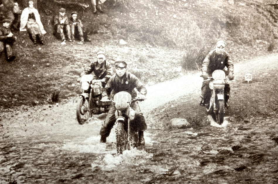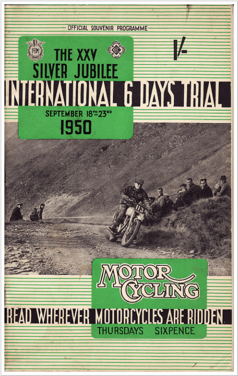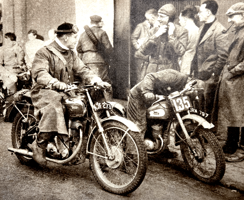 THE SILVER JUBILEE ISDT attracted overseas riders from Austria, Belgium, Czsechoslovakia, Ireland, Italy, the Netherlands, Norway, Sweden and Switzerland. It began in gales and torrential rain; having won in 1949 Britain hosted the event and, as in 1949, the trial was based in Llandrindod Well. Just before the start Czechoslovakia withdrew its Trophy team and two Silver Vase teams. This was a shame because having won the first post-war ISDT and thus hosted the 1947 event the Czechs were among the favourites. The British Trophy team comprised Captain Fred Rist (500cc BSA), Jack Stocker (350cc Royal Enfield), Peter Alves (500cc Triumph), Hugh Viney (350cc AJS) and M Ray (500cc Ariel). They were up against Italians on three 125cc MVs, a 250cc Moto Guzzi and a 250cc Sertum (Italy had won in 1948) and Austrians on 125 and 250cc split-single Puchs. Britain fielded two Vase teams to take on seven overseas teams. The Austrian trio rode two 250cc Puchs and a 500cc Beemer. There were two Italian teams, riding a variety of Italian bikes. The Dutch ‘B’ rode CZs while their ‘A’ team were on Ariels and BSAs as were the Swedish and Irish teams. Most of the 26 marques in the ISDT were British: AJS, Ariel, BSA, DMW, Douglas, James, Matchless, Norton, Panther, Royal Enfield, SUN, Sunbeam, Triumph, Velocette, Vincent—and HJ Harrison’s ‘Rovil’ , a 1925 Rover fitted with a Villiers engine. Foreign marques were CZ, Jawa, Gilera, Guzzi, Lambretta, Mondial, MV, Sertum, Puch, DKW, BMW and Zündapp. Motor Cycling produced the programme but this report is courtesy of The Motor Cycle.