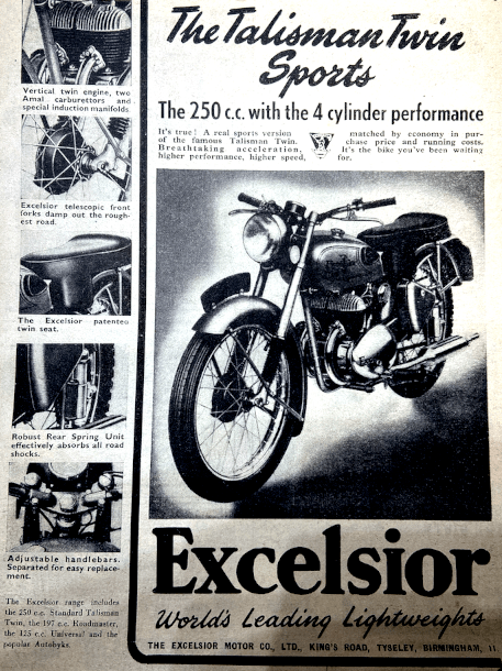 “SPEED WIZARD in the earliest days of motor cycles, and designer, manufacturer and rider, Harry Martin, whose experience in the trade dates back to 1896 and 1897, has joined Excelsiors and will be acting as Liaison Officer visiting dealers in North London, Middlesex, Hertfordshire and Essex. Harry is now in his 74th year and rides an Autobyk daily.”