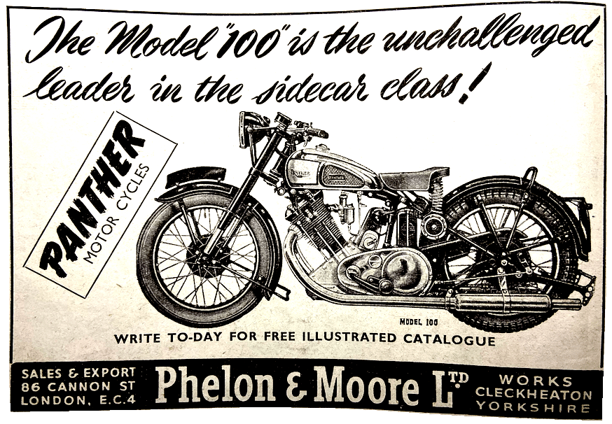 being that the former has a three-speed Burman gear box and the latter a four-speed box; both models have Lucas coil ignition. Central stands are fitted. The 348cc Panther—the Model 75—has magneto ignition and a separate dynamo placed in front of the cylinder for lighting purposes. A four-speed gear box is fitted. A ‘roll-on’ rear stand is employed as well as a prop stand. Most powerful machine in the range is the famous Model 100 with 598cc ohv engine inclined forward and forming part of the frame. The Model 100 is unchanged for 1951 except for a larger (3.5in section) rear tyre and an improved type of rear lamp. Because of its unusually good pulling powers and relatively light fuel consumption, the Model 100 has a special appeal to sidecar enthusiasts• • •Manufacture of the world-renowned Scott has been moved from its traditional home in Yorkshire to Birmingham. However, this does not mean that the Scott has lost its identity—