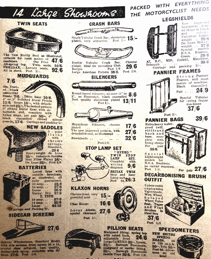 SOME YEARS AGO I shifted my residence some 60 miles from X to Y. The local paper at Y announced my impending arrival, since I was taking up an official position, whereupon the live tradesmen of Y with one accord motored over to X to bespeak my custom, and sweeten the palms of my missus and brats with delectable gifts. The stodgier tradesfolk of Y, of course, just stood behind their counters and hoped we should patronise their establishments. Many motor cycle retailers are similarly passive salesmen. You may go a long way without encountering a single motor cyclist who took the plunge because he was wooed by a retailer. Most of us took it on our own initiative, or because we were sold the idea by amateur enthusiasts. Successful dealers always adopt three methods. They make their showrooms ‘pull the public’. Next, they fasten on all spontaneous inquirers and grapple them to their souls with hooks of steel. Thirdly, they take pains to earn a reputation for first-class service at minimum prices. Unless they live in a small place, and know their population well, it is difficult to attempt more. The car vendor sees local owners driving an antique, identifies them, and suggests a trade. But a large percentage of motor cyclists graduate from shoes or pedal-cycles, and are not easy to identify. However, one Manchester firm, specialising in motor cycles, goes further than that. It has sent me a copy of its beautifully printed 4pp booklet, which is vigorously circulated among possible patrons. This is written in friendly man-to-man style. It explains that the two partners are themselves passionate motor cyclists no less than competent engineers. It describes how they started on a shoe string with ancient models, how they went into business after demobilisation without capital. and how they have built up a thriving business, by their
