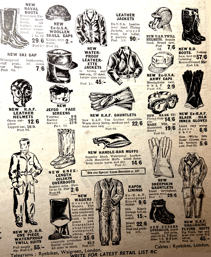 “THE RECENT LETTER of Mr. Lanyon-Owen is apt to give the rest of the motor cycle world a wrong impression about us Yank riders who prefer British machines to our own manufactured products. In the first place, it is possible to buy most of the accessories made by British suppliers, such as Feridax. Further, almost all of our own accessory companies are daily adding to their stock of gadgets for English motor cycles. But it is a good sign that these accessories do not resemble the trash described by Mr Owen as decorating the Indian which he saw during his brief trip to Coney Island. By the way, this would be the last place in America to start a serious investigation of our attitudes; Coney Island is famous for its freaks and sideshows, as well as some monstrously decorated motor bikes. Let us be serious about this accessory problem. There is no aspect of the game, outside of noisy exhausts, that does more to ostracize us motor cyclists from the general public than does the juvenile ornamentation of ourselves and our mounts. ‘Gasolene Cowboys’ is the name applied to motor cyclists over here. How can we ever hope to change this attitude if we continue loading our bikes with silver studs, fox tails and useless chrome attachments, not to forget the gaudy uniforms worn in accompaniment? One of the worst advertisements are our ‘Gestapo get-ups’—loud uniforms braying the fact that we are immature fools who choose to advertise the fact by dressing in ridiculous costumes. It is a wonderful feature of the British bike that it looks silly when it is decked out in useless gear. Most of the lads in America who ride English machines are content to leave them the way they found them.