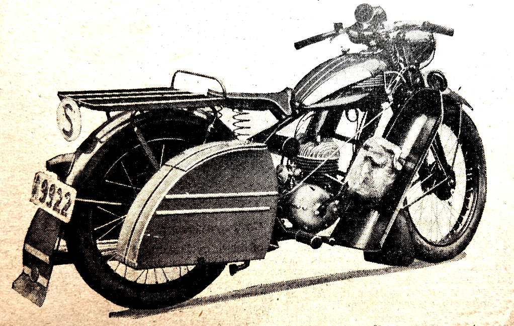 was necessary, in the interests of my garments, to keep my legs splayed-out The two-stroking of the engine was very much as usual in that the engine was prone to four-stroke when running light. The power output and general pulling ability, however, proved outstandingly good. It was very much sidecar power, if you understand my meaning, and I took pleasure in letting the engine slog smoothly, cart-horse style, up hills, which, with a four-stroke single, under equivalent conditions, would inevitably have demanded a change to a lower gear. I was reminded of the pulling powers of bigger, deflector-piston two-strokes of the past. The engine had just the characteristics needed by many of those who buy machines of this type. Once again, I was trying a new machine, and again I had brakes which had not bedded down. Indeed, I very soon found that it was possible to stand on the rear brake pedal. The front brake was better and could be assessed as ‘fair’. Gear change was a trifle ‘clonkish’ upward. Maybe I harp on gear changes, but the past has shown that it is possible to provide a perfect change even with very widely arranged gear ratios. I doubt whether any suspension system would have coped to perfection with some of the atrocious roads we traversed. As things were, I was thankful that I do not possess false teeth. The front fork, I feel, can be developed further. To sum up in a sentence, my impressions were: An honest-to-goodness, potent lightweight and a definite advance in power and speed on last year’s model. Prototype No 1, 601 Zündapp, was undergoing long-distance tests, I gathered. It was in sidecar form, with the sidecar on the right. This is a transverse, horizontally opposed twin—much sleeker than in the past—fitted with shaft drive, a four-speed gear box that incorporates sprockets and chains instead of pinions, and rear springing of plunger type with hydraulic dampers in the vertical members that lie immediately in front of the spring housings. My test of this machine was brief. Already it was late and I was, I suspected, keeping the experimental-shop folk nose-to, grindstone well after their rightful hour. Further, being accustomed to the sidecar on the left, I am not a dab hand at driving an outfit which is vice-versa and demands that one opens up for right-hand bends and shuts off for left-hand ones. Fork angles were being tried out, and there was a trail of rather more than 2½in I found my handling of the outfit far from clever and that I was apt to lurch about the highway. However, what 1 chiefly wanted to learn was how the latest 600cc Zündapp power unit performed. I have always had a very great respect for the Zündapp transverse twin—the prewar 600 and the larger unit which the German Army used during the war. Frequently I have beard the remark that the smaller twins were in a class of their own. Were I to state that the latest engine packs a very satisfying punch, probably my meaning would be