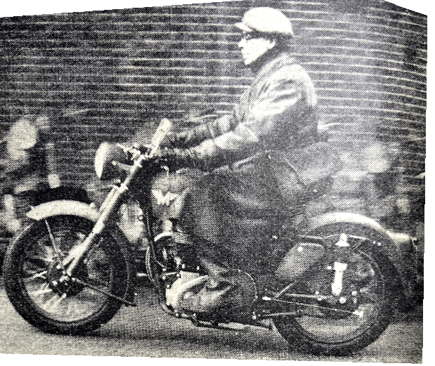 “AN AMERICAN CORRESPONDENT recently said that riders in his country were largely in their teens or early twenties. In this country I should say that the average was considerably higher, and perhaps a good average would be 35. Can anyone confirm this? I myself am in the middle forties. Before the war I was a car owner, but sold the vehicle in 1941 on going into the Forces, and, of course, on coming back to civilian life the price of a car was prohibitive and the cost of running excessive. So I returned to a motor cycle. I bought a Speed Twin six months old (for power and quietness) which had only done 2,000 miles and which was in excellent trim. It has given we many miles of pleasure and many delightful days in the open air. I am a leisurely rider and speed is usually around 35mph. With a dualseat I find I can do 100 miles at a stretch without soreness or fatigue. As for clothing—in summer I wax an exWD tank suit (or overall), which is waterproof, and a beret. In winter I wear the same suit with Irvin jacket and trousers underneath, a flying helmet, leather gloves with silk inners, and leather knee-boots. In my opinion, this outfit takes a lot of beating. As I ride for pleasure solely, I usually choose dry days for my outings, and that means less cleaning to do on getting home.