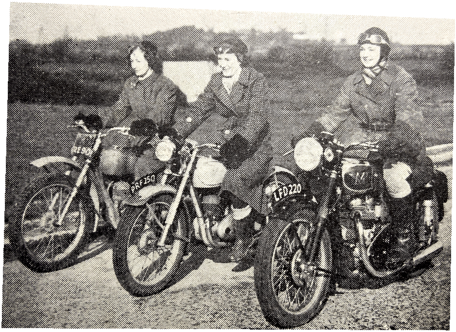 “I TRUST FASHION expert Mr Leo Starr will agree with me that the following mode is the most practical for pillion riding. Owing to the vagaries of the British climate I find that a swim-suit and a fur wrap are much the best attire, as one is well equipped for summer or winter with the minimum of effort. For headgear I am sure one of the new eye veils would add a glamour note to this otherwise utilitarian outfit.