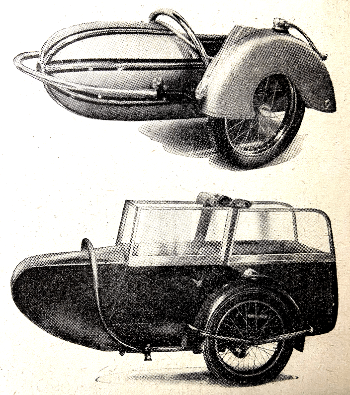 “RANGES OF SIDECARS by seven specialist manufacturers are exhibited at Earls Court. Six are British [Blacknell, Garrard, Laxton, Matheson, Swallow and Watsonian] and one is German [Steib]. The number of different models approaches 50. In addition to these ranges some motor cycle manufacturers such as BSA, Norton, OEC and Sunbeam list sidecars.”
