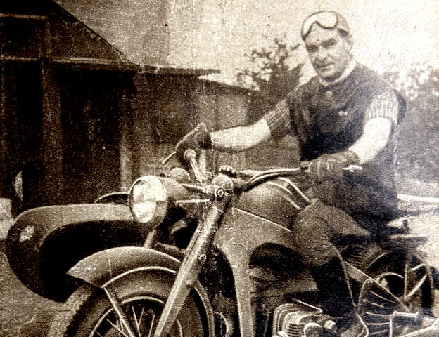 I had gone through Belgium on British petrol and reckoned on refilling at Aachen, but when I got there it was Saturday and four in the afternoon, and that is a time when German banks are shut! I had no money and my travellers’ cheques were useless. Worse than that, I had very little fuel. After one or two inquiries, I entered a building with the Union Jack outside, and called to a gentleman in shirt-sleeves, a peak hat, and blue trousers, who was making his way up some inside stairs. ‘I must get to Siegen tonight,’ I said, ‘and I’m stranded without money’ ‘Must! Must?’ he retorted. ‘We can’t do much for people who say “Must.”‘ After I had explained that the urgency was from my angle, and that I only hoped for his co-operation, the gentleman with some condescension invited me to follow him upstairs. He had the sort of huge office in which most people feel small, and I realised that he was a Colonel of the ‘Public Safety’, probably quite unfamiliar with the undignified approach that had attracted his attention! Staff Officers were assembled for a meeting and their business was delayed during the deadlock in which we faced the fact that there was no official way of providing me with fuel. Perhaps I was indiscreet in suggesting that policemen could surely transfer an odd gallon from a vehicle somewhere but a Major beamed a broad smile and asked me to accompany him to a garage. There he asked me in a puzzled tone how I had come to meet the Colonel. ‘I simply saw him going up the stairs,’ I said, ‘and shouted!’ The German pump-attendant was told to ‘fill it up’, and for the first time I experienced the delight of German garage service. Seven litres of fuel were mixed carefully with oil in a pump-equipped can. The petroil was then tipped through a filtered funnel into my machine, the cap replaced, and a duster run over the frame. After thanking the Major, I was on my way. I had not moved a hundred yards when there was a tooting behind and another ‘GB’ motor cyclist pulled alongside. ‘Where are you off to?’ he asked. ‘Siegen—’ I said, ‘and you?’ ‘Not far from here—to my family.’ ‘Aren’t you from England?’ I asked. ‘From Croydon. That’s where I live. But my family is here, I am German.’ He was an ex-POW who had stayed in England; riding his Ariel, he proved a happy travelling companion for the next 20 miles. I declined his offer of hospitality, for I wanted to reach Siegen before dark. At Cologne there was a frightening clatter behind me. I stopped and turned to see a civilian waving my ‘GB’ plate at me, though we searched in vain for the missing bolt. The bolt also located my mudguard, number plate and rear light, and it was impossible to travel without it. So I pulled into the first garage I saw and explained that I had no money. It did not matter. The mechanic spent a quarter of an hour finding a suitable replacement, fitted it, and waved me on my way with the words, ‘Happy travelling!’ I reached Siegen at dusk. After about a week there was a visitor to the house at which I was staying. This man had seen me on the Comet in town and wanted me to tell the local ‘Motorsports Club’ about it. The German language was a deterrent, but after persuasion I agreed and, as honorary guest at their meeting, was filled with beer and food! They also asked me to demonstrate