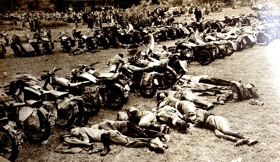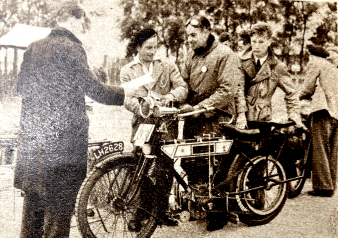 “VETERAN TT RIDERS HERE: Founder members of the TT Rider Association formed in May last year are 25 famous TT riders. Only those who have ridden in the TT races are eligible to join, and there are row 50 members. The founders stipulate that the Association shall not interfere with the running of the races…Over the loud speaker on Senior TT Day came the message welcoming the 25 members of the Association, some of whom arc over 70 years of age. ‘We are all delighted to see them,’ said the broadcaster, ‘and hope we will have them with us for many years yet.”