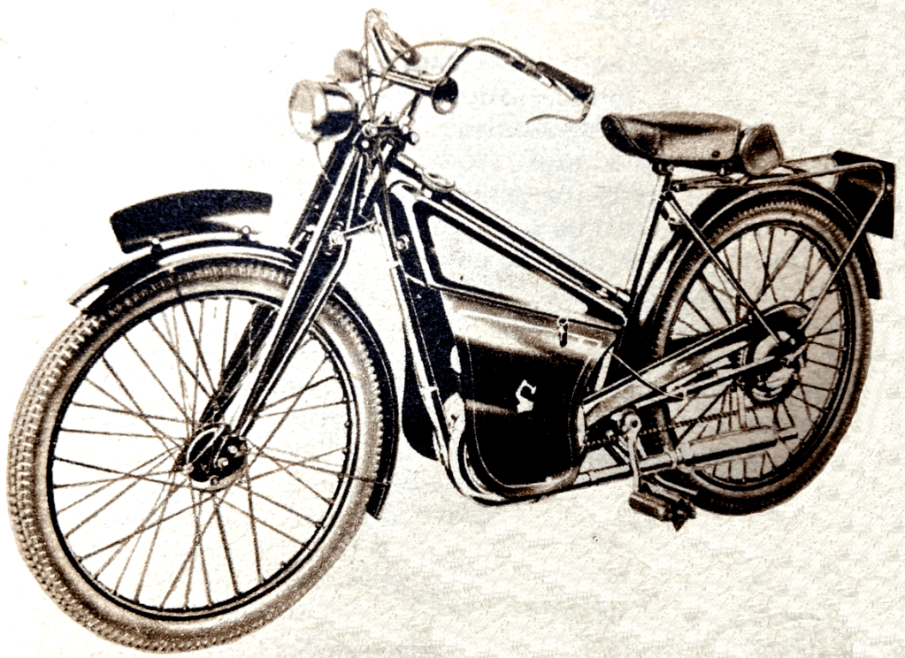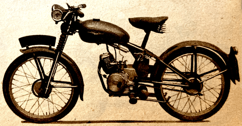 JAPANESE RIDERS LOOKING for something more comfortable than their powered bicycles snapped up Tohatsu’s 98cc Bumble Bee ‘luxury’ model. Tohatsu was just one of up to 80 small manufacturers taking full advantage of Japan’s US-backed economic revival in a ferociously competitive domestic market. Between them they made a total of 24,309 lightweights and, let it be noted, they exported 318 of them. A loom manufacturer named Suzuki joined the fun with a 36cc two-stroke motorised bicycle marketed as the Power Free. It featured a double-sprocket gear system that allowed a rider to pedal with engine assistance, pedal without assistance, or disconnect the pedals and run solely on engine power. The Japanese patent office was impressed by this and subsidised Suzuki’s R&D. A decline in the cotton market prompted Suzuki to shift its focus toward motor vehicles.