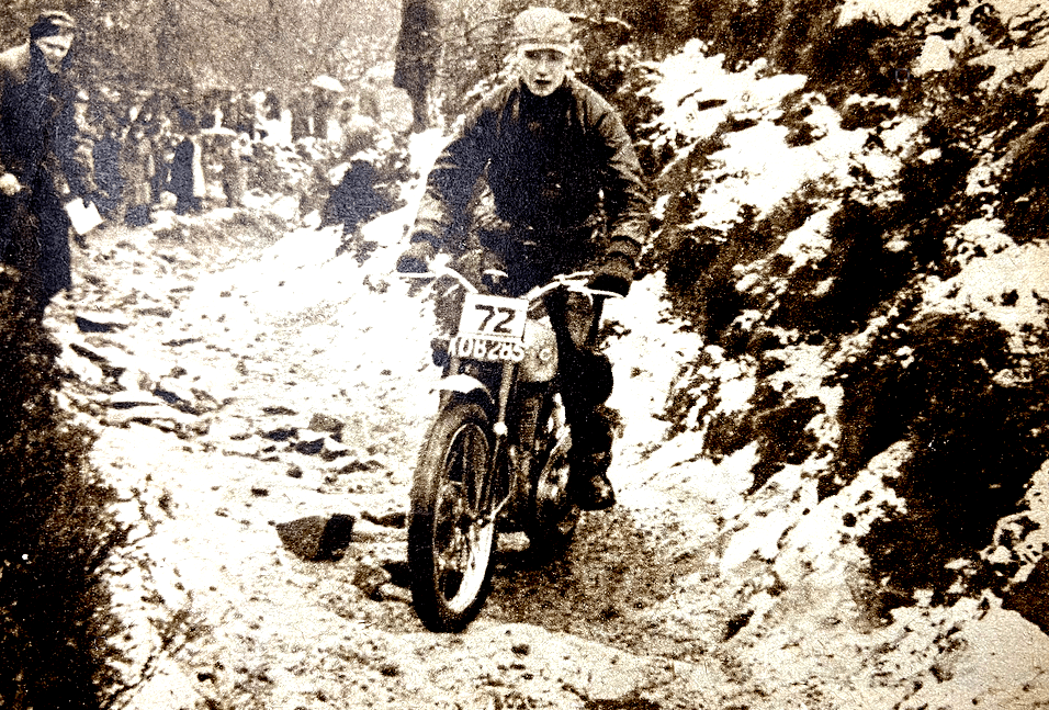 Halsey (498 Matchless), MT Wilkinson (343 Triumph), GE Broadbent (346 Royal Enfield), and the Dot surmounted by a grinning Barugh. Among the rearguard was Dent Oliver (499 Rudge), the speedway rider, who would probably have been grateful for a handful of cinders here and there. To make things a bit more difficult, a thick mist now enveloped the moor, reducing practical visibility for the riders to about 10 yards. During the next two laps the leader was gradually outpacing his nearest rival, Archer, while some slight reshuffling was going on among the followers-on. It was quite clear now that Barugh on the Dot was well in the lead for the 250cc class award. Came news that J Avery (499 BSA) had taken a heavy toss at the quarry and was being removed to the infirmary for attention to cuts and abrasions (fortunately the injuries were not thought to be serious). By Lap 4 Stonebridge was lmin 35sec ahead of Archer. Next in order were Tye, Richardson, Nex and Broadbent. A pause before the Barugh Dot buzzed into view, followed by none other than GH Ward (498 AJS) who, after being well back on the first lap, had been industriously slicing his way through the field. A couple of laps later and the Stonebridge lead was 2min 25sec—quite unassailable assuming rider or machine did not give way under the strain. Both Tye and Richardson had overtaken Archer, and Nex was ‘missing, presumed sunk’. Bentham had retired with a burnt-out clutch. Various others had also retired; the field was getting thinned out considerably. E Ogden (490 Norton) stopped with a broken chain, and RK Pilling (498 AJS) retired after a fall. The field was not the only thing that was getting thin; so was the weather! What had previously been drenching rain was now biting sleet and at times even hail. Richardson (Lancashire), who had been leading the ‘War of the Roses’ battle, now found himself displaced by Broadbent (Yorkshire). MT Wilkinson found time to stop for refuelling, and JS Hyslop (347 Matchless) to throw a clod of earth at some officials as he went by. As the final lap started for the leaders Archer recaptured third place and Broadbent found he had Ward hot on his tail. A cheer went up as Stonebridge took the chequered flag, almost a complete lap it front of Tye, the second man home. Archer had held on to third place and Ward had jumped into fourth position. The rain continued unabated as the mud-bespattered remnants of the entry straggled in to receive the chequered flag. For those who required them, hot baths in Bury ha( thoughtfully been laid on by the organisers. RESULTS Motor Cycling Cup (best time): BG Stonebridge (498 Matchless), lhr 19min 21.4sec. Ashes Casket (fastest Yorks or Lanes resident): GE. Broadbent (346 Royal Enfield), Yorks, 1hr 26min 44sec. Raymond Bailey Trophy (fastest NW Centre member): FG Richardson (499 BSA), lhr 29min 6.6sec. 500cc: LR Archer (490 Norton). 350cc: DS Tye (348 BSA). 250cc: W Barugi (197 Dot). Best Newcomer: MT Wilkinson (348 Triumph). Manufacturers’ Team Award: BSA (FM Rist and DS Tye).”