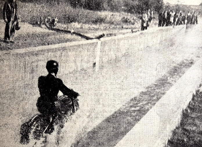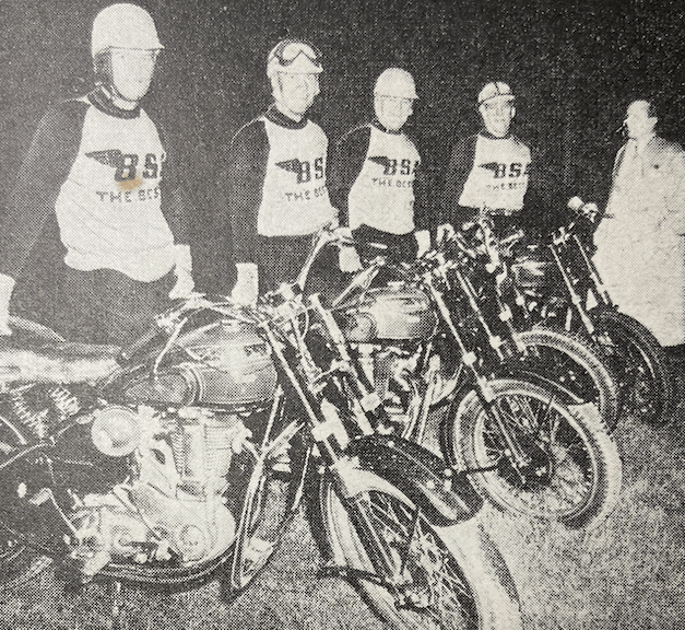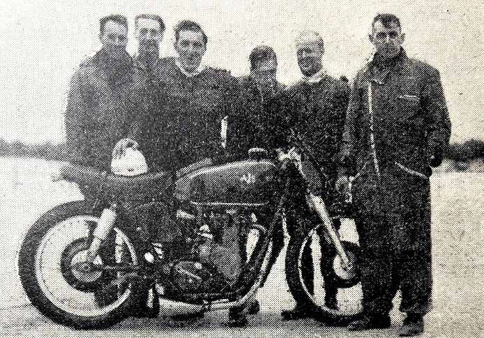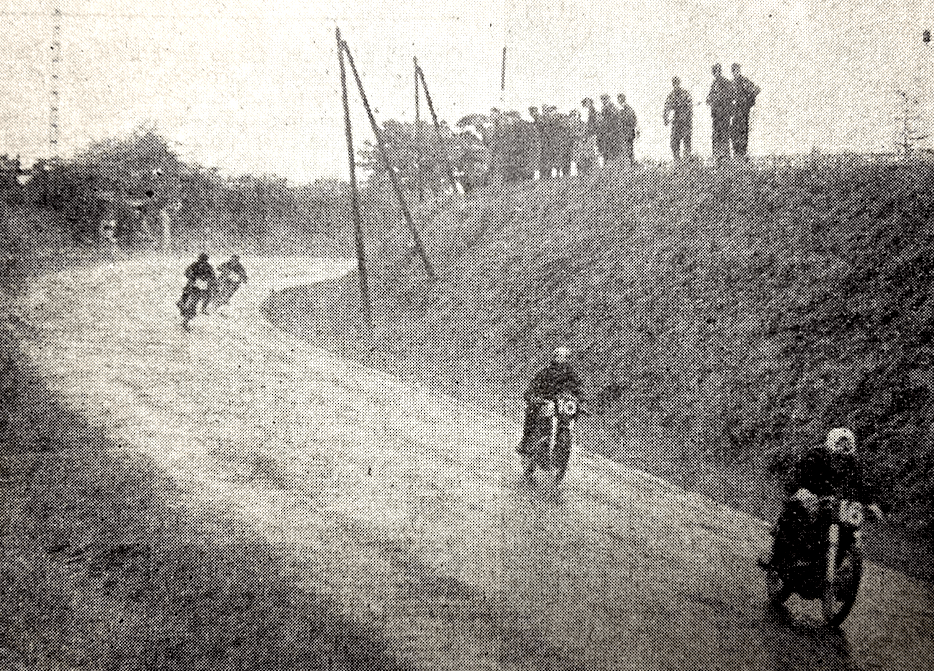 “IT WAS A DULL DAY, with a coolish breeze for the Middlesbrough Club’s annual race meeting on Redcar Sands, last Saturday. The crowd, a record, witnessed some very good racing. There was an entry of 85 in the motor cycle classes. Apart from a little water on the seaward side the beach was in a good state, and the programme ran smoothly to time. One exciting—and sad—incident was when EF Hall’s OK Supreme caught fire and was more or less burnt out. Since the wind was against the competitors the conditions were not ideal for an attempt on the flying kilometre. However, both A Roddam (998cc Vincent) and FM Rist (646cc BSA) had a go. Roddam registered 107.55mph and Rist, 103.56. In the 20-mile East Yorkshire Championships there was keen rivalry. The 350cc championship started well and promised a fine duel between Rex Young (Norton) and JP Bean (BSA). Young, however, had plug trouble and the battle then was between Rist, Bean and JK Becton (BSA), who finished in that order. Next there was the 600cc championship. Rex Young (Norton) got away all right and was challenged only by Rist (BSA). It was a ding-dong battle with some beautiful cornering. Young, whose wrist was in plaster owing to a broken bone, not only won, but at a speed of 74.3mph, as against his winning speed last year of 71.9.”