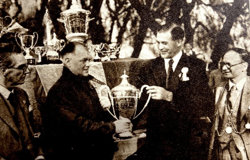 member of the British Trophy Team—were violently sick on the way to the start on the first day. This sickness they themselves attributed purely to ‘first-day jitters’. To quote another instance—Fred Rist, Trophy Team captain, arrived at Varese in a neatly fitting suit which, at the prize-giving, looked as though it had been made for some one twice his size—so much weight had he shed during the six hectic days. Another nerve-racking aspect for our teams was that they were billeted so far away from the headquarters hotel, where the day-by-day results were calculated and issued, and where the jury met each night to discuss protests and any other irregularities. By Friday, team manager Len Heath had covered 400 miles travelling between the Campo dei Fiori (the riders’ hotel) and Varese. Major Watling, representing British interests on the jury, was at the headquarters hotel and, in a way, cut off from the riders whose interests he was safeguarding. He was one of the most severely harassed of all officials at Varese! Do not let it be imagined, however, that a dog-in-the-manger attitude was adopted in the face of this and many other onerous difficulties. On the contrary, once they were accepted and the trial was underway, the snags were taken for granted as part of a tough itinerary. The whole question of the inadequacy of the accommodation, incidentally, boils down to the plain fact that Varese, picturesque Italian parish though it is, was not at all well-suited to quartering, compactly, the numbers involved in a large-scale