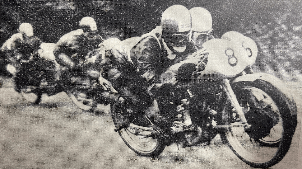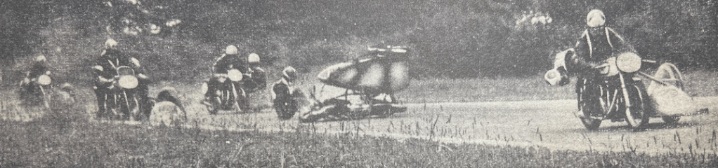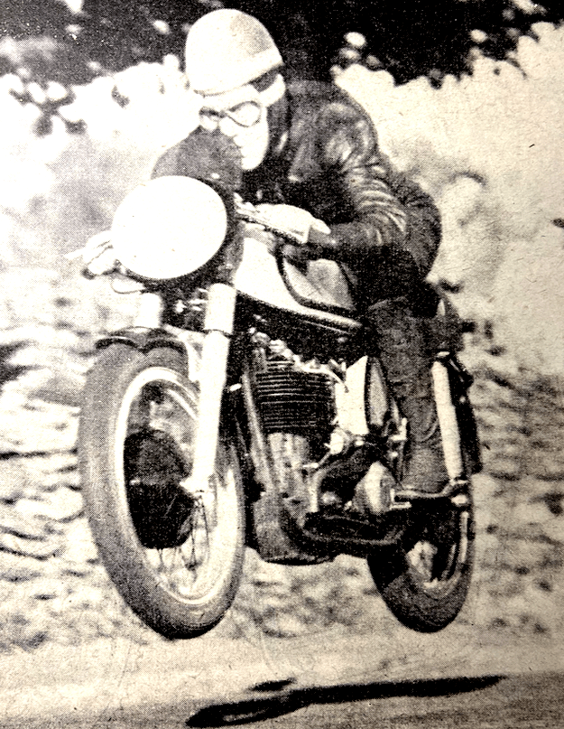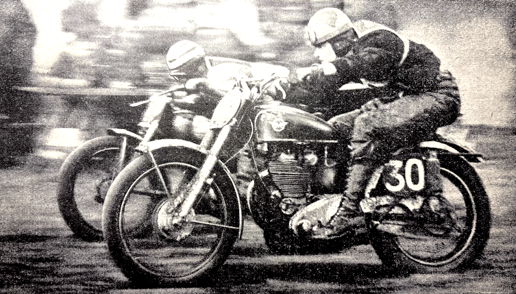 “UNDER OVERCAST SKIES and in heavy rain, thousands of enthusiasts from all parts of South Wales set out for Eppynt last Saturday in the hope that by the time they arrived at the five-mile circuit on the wind-swept Breconshire ranges the weather would relent. But, alas for their hopes! While the rain did ease off to become intermittent during the racing (organised by the Builth Wells and Carmarthen MCs), conditions, at times, were very unpleasant indeed. The spectators, greatly reduced in numbers, huddled at various points of vantage along the course to watch the riders struggle against the vagaries of nature. It was left to these riders to bring some colour into the drabness of the bleak May day. And, indeed, they did so. While no records were broken in the Senior, Junior or Lightweight events, speeds were high and, in one instance, went near to eclipsing last year’s lap record. This was in the Senior race, when ST Barnett (499 Norton) registered the fastest lap at 70.01mph as a challenge to RH Dale’s 1951 figure of 71.12mph.”
