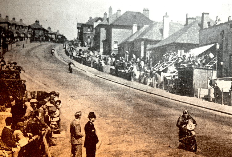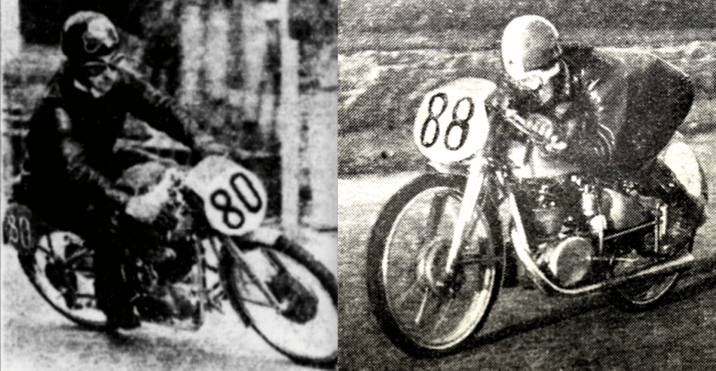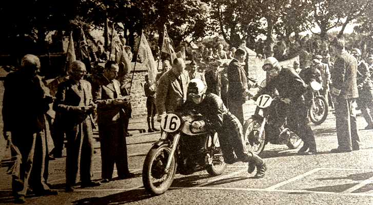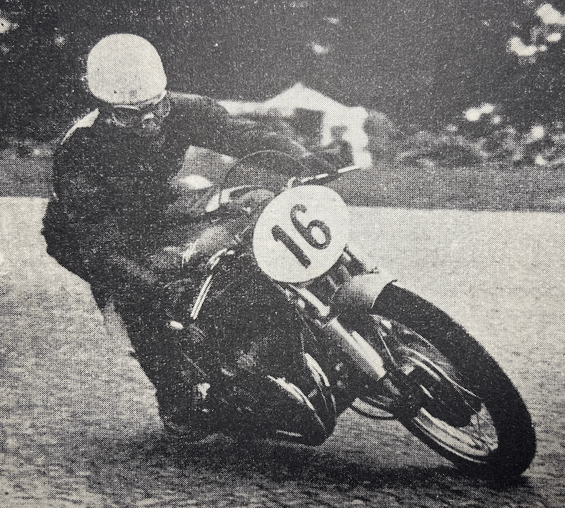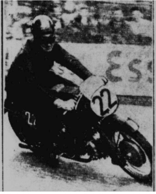 “THERE WERE FIVE Manx competitors in the Clubman’s Senior, and three of them finished. Biggest hopes were pinned on D Ennett (Matchless), from Castletown, but his luck was dead out. His first lap was completed in the very creditable time of 29min 3sec, but on his second circuit he was held up at Hillberry with engine trouble, and eventually toured in to the Start where he retired. Best performance was put up by WA Harding (Norton), of St Ninian’s Road, Douglas whose growing lap times were as follows: 29min 21sec; 59min 30sec; 1hr 28min 57sec; and 1hr 58min 31sec. Next came RAD Mawson (Norton), of ‘Farnleigh’ 6, Brunswick Road, Douglas (who had a spill in practice, followed by a short stay in Noble’s Hospital). His time was 2hr 14min 55sec. JP Linskey, of 37 Malew Street, Castletown, did his first lap in 29min 3sec and then retired on his second lap with a split petrol tank. The fifth Manx boy, KA Taubman (Triumph), of 55, Willaston Crescent, Douglas, completed the race in 2hr 16min 16sec.”—Isle of Man Times