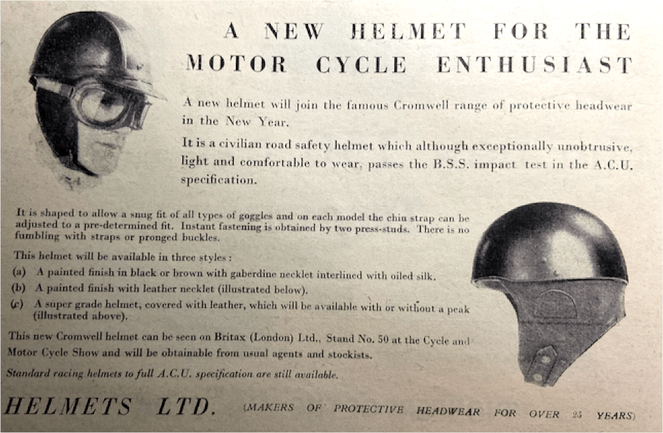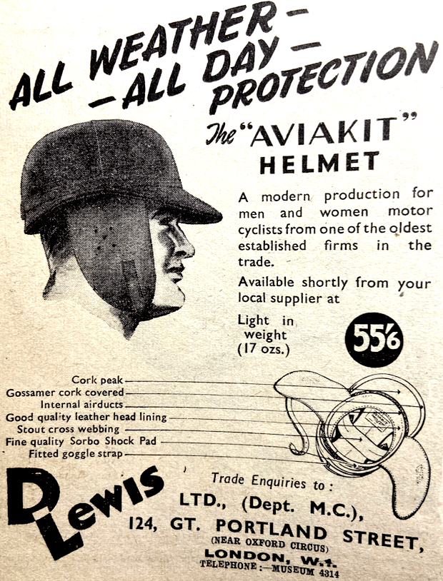 “IN THE HOUSE of Commons last Thursday Lt-Col Lipton asked the Chancellor of the Exchequer whether he would abolish the Purchase Tax on safety-helmets in order to encourage their use by motor cyclists. Mr. Boyd-Carpenter, Financial Secretary to the Treasury, said he was considering this matter, though he feared there were great difficulties involved. Lt-Col Lipton asked whether, instead of penalising the use of these life-saving precautions and putting a tax on safety, the Minister would consider the advice given in the opening speech at the recent Motor Cycle Exhibition at Earls Court. Mr Boyd-Carpenter said he hoped his answer indicated sympathy, but the hon member must recall that there were many other forms of protective clothing which were subject to tax, and the possibility of a concession in one direction would inevitably give rise to consideration of the other cases as well. Mr Deedes asked if he would bear in mind how strongly a large number of doctors and surgeons felt about it, in view of the amount of time and money they wasted dealing with head injuries to motor cyclists; if he was prepared to remit the tax, he would get it back on savings in the health services. There was no reply.”