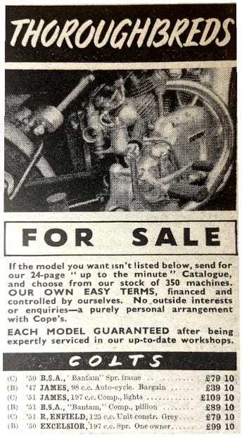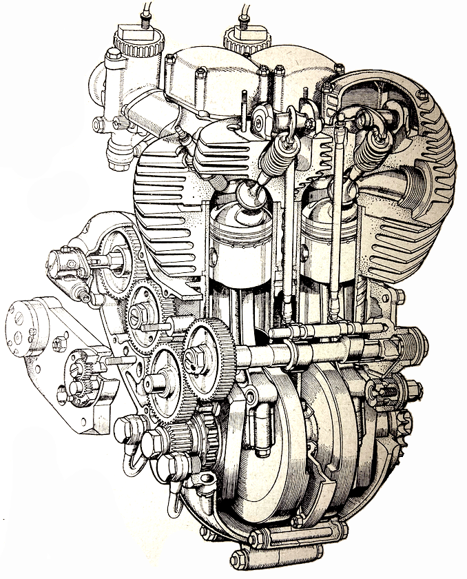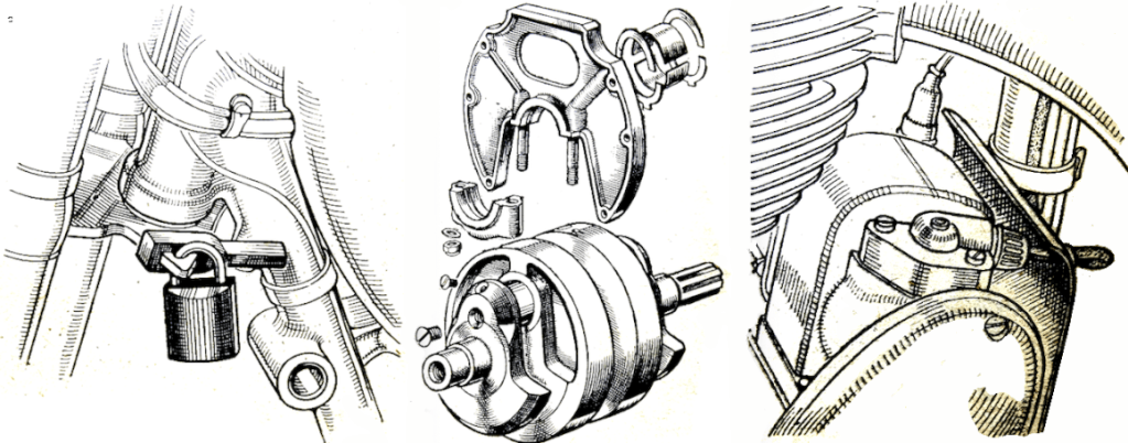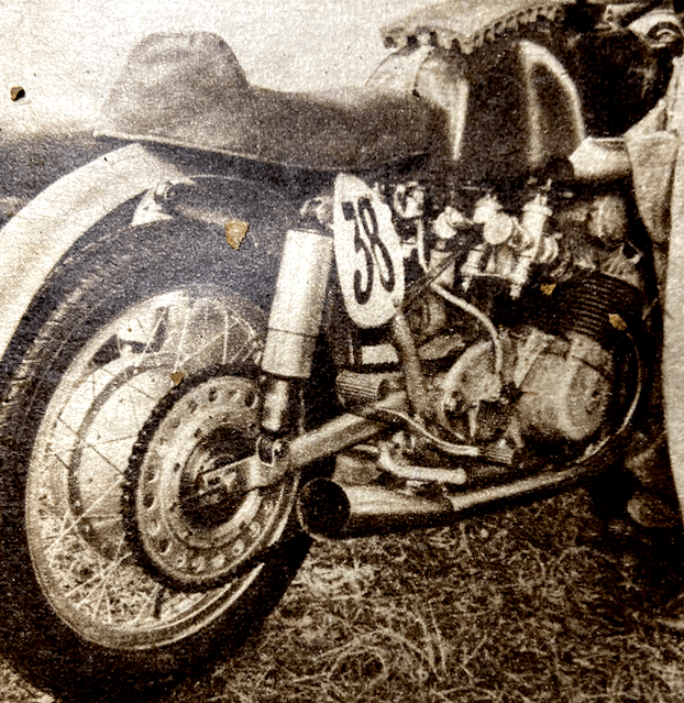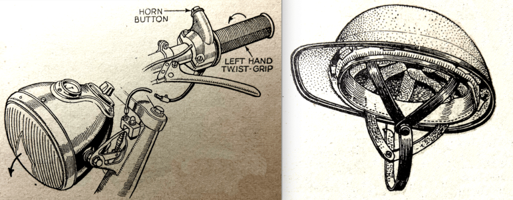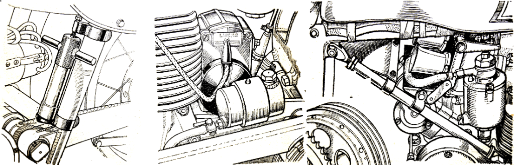 “AN ENGINE IN really good condition should sound like sweet music to a discerning car. My engine comprises quite a young orchestra. The kick starts; then, as the plug leads, you will hear (if you listen carefully) that the piston rings, the exhaust pipes, the brake drums and the handle ‘baas’; to keep them in time, the petrol taps and the valve springs; only the foot rests! It is a very individual machine!