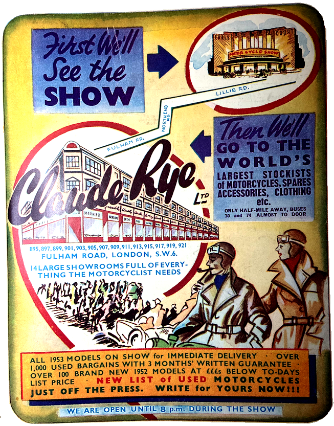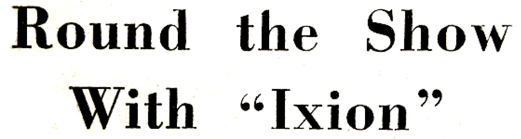 “DURING SHOW WEEK a few of the surviving pioneers meet at their annual dinner in London. They are in a position to value the Earls Court achievement more accurately than the youngsters who throng its stands. They can remember when a stagnant parliament and narrow-minded, horsey interests condemned this nation to lag far behind France, Austria, Italy, Germany and America. The red flag, and the 4mph limit, grudgingly succeeded by the 12mph limit, both followed over a long period of years by a police persecution which can now be labelled as unconsciously both savage and dishonest, hampered all that our engineers could attempt in the field of light road engineering. Time was—and I lived through it—when British workmen could not cast a light cylinder, or wind a decent ignition coil, or turn out a spark plug capable of sustaining any real heat or make a tyre larger than those for pedal cycles. Either we tried our prentice hand, and produced rubbish; or we bought from the Continent and ate humble pie. The motor cycle industry faced a tougher struggle than its big sister, the car industry, mainly because the latter catered for well-to-do folk, who could cheerfully waste their money on new toys, whereas the cheap motor cycle appealed to the less pecunious masses. But humility and determination gradually fought down all opposition. Today, if some of our larger concerns came on the market, their price would be ranked in millions; and they are so precious to their present owners that they will probably never change hands.”—Ixion