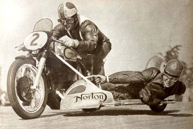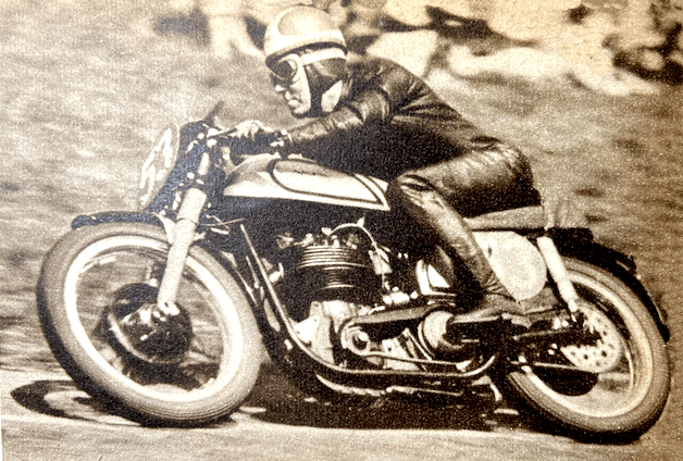 HERE’S THE SENIOR TT REPORT, courtesy of the Isle of Man Times: “A 100mph lap? If that can be done, Geoff Duke is the man to do it, and the Norton, is the machine, but is today, Friday 13th, the day? We do not think it can be done this year, but by the time you read this we will know. A look at the course lends strength to our opinion. Seven times round the 37¾ miles circuit, which requires the rider to made 300 gear changes and take 200 corners each time, is enough to make anyone say ‘It can’t be done’. Eleven non-starters left 72 of the world’s most experienced riders in the race, led by Geoff Duke, No 1 on the road. Only three manufacturer’s teams, two Norton and one AJS, entered the fray. No 1 Norton team consisted of Geoff Duke, Reg Armstrong and Ken Kavanagh, and the second team was Ray Amm, ALParry and WAC McCandless. The AJS team comprised Jack Brett, Bill Lomas and Rod Coleman, the New Zealand ace. Ten club teams included the new Zealand ACU (Ken Mudford, Dean Hollier and Rod Cokeman), and the ACC of Australia (WA McAlpine, KT Kavanagh, and Ern Ring). At 10:30am the maroon fired and the starter’s flag unleashed Geoff Duke on the last stage of his bid to win the ‘double-double’ and his third successive Senior TT. For long he has been the fastest man on two wheels. Soon we would see whether this year he would become a faster fastest man. The weather report from Ronaldsway declared that it would be cloudy with light, variable wind. Drizzle was expected later in the afternoon. Mist patches were forming and dispersing quickly on the hills but whether they would envelope stretches of the mountain road was not certain. Reports from the travelling marshals indicated that the number of spectators was the greatest ever and a modest estimate was that 100,000 were watching. A telegram from Auckland, New Zealand, 12,000 miles away, wished all riders good luck generally and the New Zealand riders in particular. It was signed John Doe, a member of the 1950 team. Surprise was that Brett and Lomas, members of the AJS team, set off on last year’s machines, but Rod Coleman, the third member of the team, was astride the latest model. Les Graham’s beautiful red and silver Agusta, with its distinctive whine, got away quickly. According to the indicator clocks Graham made up time on Duke for the first stretch to Ballacraine, and Brett had passed five men before reaching Kirk Michael, and was second to Duke on the road. Graham’s clock showed him to be at Kirk Michael a split second before Armstrong, who set off 20 seconds ahead of him. Dennis Parkinson, the commentator at Ramsey, described Duke as going very quickly but his engine seemed to be misfiring, then came a long gap before he sighted the second rider, No 2, Phil Heath, who passed through 2min 15sec after Duke after starting 10 seconds after him, but what happened to Jack Brett? Several riders including McEwan, the