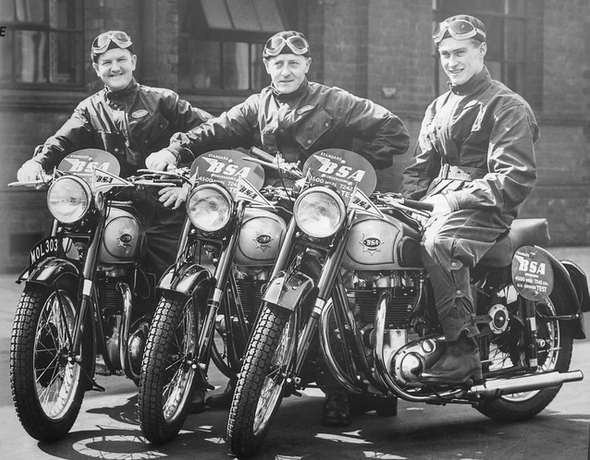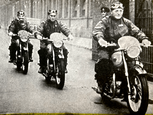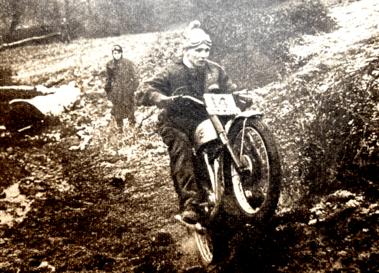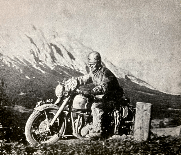 for the Silver Vase trophy, had a series of misfortunes. First his Royal Enfield petrol tank leaked. He repaired it. Making up time he crashed and was knocked out. Today he resoldered the tank and had a puncture. Finally the tank split again. Petrol poured on the hot exhaust pipe and the machine caught fire. Next, Dick Clayton, in the same Vase team, was disqualified because a seal of his Matchless was broken. Finally Peter Hammond, on a Triumph, retired with a broken gearbox. Of the 17 British teams which started the trial on Thursday, only one now remains with a clean sheet—the three riders of the Birmingham Motorcycle Club, all on BSA machines. The only woman rider still going is Mrs Molly Briggs, tubby, shy, who has plugged on after losing nearly an hour on the mountain. She also dropped marks for late starting. She is riding a Triumph and has lost piles of points. But she is still running. Not a bad effort.” The Beeza trio’s exploits were the best news to come out of the Austrian Alps and Molly Briggs did bloody well as you’ll see by reading on. But “tubby, shy”…”not a bad effort”…sexist, patronising bullshit. So no change there, then. And now, the good news…