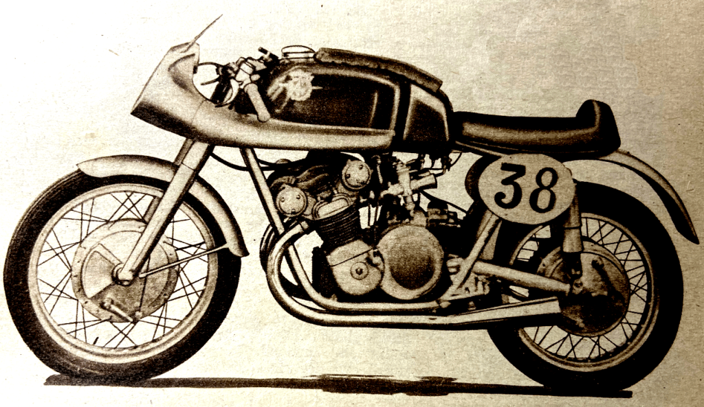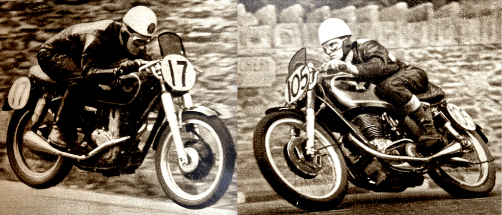 “ENTRIES FOR THIS YEAR’S international TT races total 240. There are 83 for the Senior (500cc) event, 94 for the Junior (350cc), 34 for the Lightweight (250cc), and 29 for the Lightweight (125cc). The total is 52 below the record set last year, but this fact will have no influence on the success of the events, since there is an adequate entry for each. The lists do not show as much variety in national representation as could be wished. Nevertheless, a warm welcome is extended to entrants and riders from Australia, New Zealand, Canada, Southern Rhodesia, Ceylon, Denmark, Spain and Italy. It will not pass unnoticed that a rider from Australia and one from New Zealand figure in Manufacturers’ teams. With entry lists for the Clubman’s Senior Race at 97 and for the Junior Race over-subscribed at 105, there is a total of over 400 entries for the various events to take place during the Isle of Man ‘week’. Good racing is in prospect.”