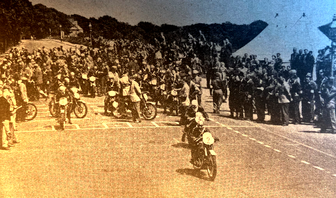 AS A CHANGE OF PACE from the TT reports, here’s a thoughtful review of the event from the Manx point of view, from the pages of the Isle of Man Times: “It is very fine to have come through a particularly successful and exciting series of Tourist Trophy races; fine, too, to have seen the success almost completely unshadowed by fatal accident. Fatalities have occurred rather frequently during the past few years: they have caused great sadness—as the one fatality this year causes sadness—and caused some not unnatural questioning. Life will always have its hazards, and while human nature remains as it is, young men—healthy adventurous young men of the kind which the world needs—will seek the bubble reputation in the cannon’s mouth*. The races were a magnificent example of sport. The struggle for victory—several winners led by a few seconds—and the changes of position, captured the imagination as much as in any year in TT history. The weather was gloriously fine; large numbers of visitors came, and there never was such an inflow of motor cycles and motor cars. Many of the visitors spent plentifully. The TT has become an indispensable curtain-raiser to the Manx holiday season. It must have given the Island more publicity than ever; every means of ‘telling the world’ was used, including for the first time television. The modern motor cycle continued, to prove its reliability—a reliability which the Manx TT races have largely created—and a very high proportion of the competitors finished. Italy continues to produce the fastest racing motor cycles in the Lightweight and Ultra-Lightweight classes. But in the Senior and Junior classes, where the highest speeds are made, and where victory counts enormously, in fame for the rider and sales for the machine, Britain held her own and the foreign challenge was beaten. In a great event like this, everything depends on good organisation and solid, good-tempered hard work. Whether or not the work is paid for, it has to be good; this time it was good beyond praise. Many people do give their time and their strength for the sake of sport or for the sake of their native land and its prosperity. The marshals and the police were splendid; and the police had to regulate traffic not only in the vicinity of the TT Course, but all over the Island. The streets of Douglas, the roads of the Isle of Man generally, became intensely busy for a few days, and motor cyclists who arrive in order to follow the fortunes of their favourites are usually lively young men. Some of the policemen on point duty were the last word in efficiency. The officials and workmen of the Steam Packet Company and the Harbour Board handled the record number of motor vehicles coming into the Island and afterwards going out—and going out in greater concentration than when coming in—with admirable efficiency. We cannot pretend that all the motor cyclists who came observed all the traffic regulations. We cannot pretend that all of them remembered that there were other people in the world. (Yet it is the duty of everyone in charge of a fast vehicle to take care, every moment, of his own and other people’s lives.) Some road regulations in the Isle of Man are different from those in England, and a motorist may break the law, and may offend against the public safety, without being consciously reckless. The ‘Halt’ sign is painted on the surface of the road instead of on a post erected above the road, and it positively means ‘Stop’; it isn’t obeyed if you slow down. The Highway Board did state this on the back of the provisional licence which they issued to visiting motorists, who also received a printed ‘handout’. But people don’t find time to read anything lengthy; they need to have things said for them in a few words and plain, We suggest to the authorities that fewer and more pointed words should be used next year. We are certain that the ‘Halt’ notices are preventing a great number of accidents. The suggestion has been made that when people ride or drive along the TT Course during the TT period they ought always to travel in the same direction as that which is taken by the riders in the races. For the first few moments that idea may be thought useful in preventing accidents. Local motor cyclists and all the race ‘hangers on’ and ‘fans’, are infected with the rage for speed. But if they were all travelling in the same way, if they believed that nothing was likely to meet them, they would probably become speedier still; they would feel that the Course had been absolutely given to them all to race on. It is only given at certain hours of certain days, and to certain accepted people. Besides, the roads are the property of the public except on the actual occasions when they are officially closed; if your business or your normal occasions cause you to travel against what appears on that day to be the stream, you are not to be discouraged from exercising your rights.”