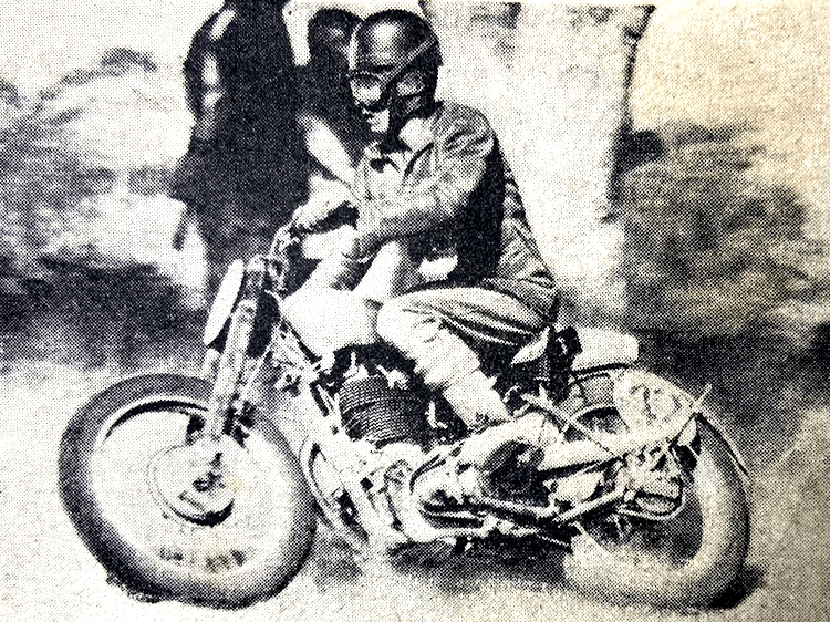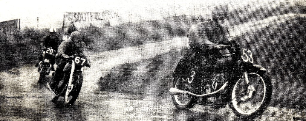 “ORGANISED by the Wirral Hundred MCC and held on Wallasey Sands, the Daily Dispatch Gold Cup meeting always attracts a large entry. At last week-end’s meeting, 73 competitors came under starter’s orders. The races were run in class heats, the first four riders in each class going forward to the big race of the day which was held over 30 laps. The 500cc machines conceded two laps to the 250s and one to the 350s. The event was won in brilliant fashion by RB Young, the Norton factory rider. Starting from scratch, Young disposed of the 350 and 250cc competitors on the 17th lap and continued to draw ahead. By the end of the race he was over a lap ahead of the second man, S Wilson (498 AJS); third position was held by FC Pusey (348 Norton). Because of shifting sands, the course was not in its usual good condition. Both corners were cutting up badly and riders had to cross four gullies in the course of a lap. Viewing the circuit during practice Young very wisely decided to ride his new spring-frame Norton scrambler, and there is no doubt that this choice contributed materially to his victory. Where Manx Nortons and Triumph Tiger 100s were getting bogged down on the corners, Young sailed through as though on a main road. The 15-lap Silver Trophy race for side-car machines brought a resounding victory for F Taylor (498 Norton sc), who won by over a lap from W Poulton (998 Ariel sc), and G Woodworth (499 BSA sc).”