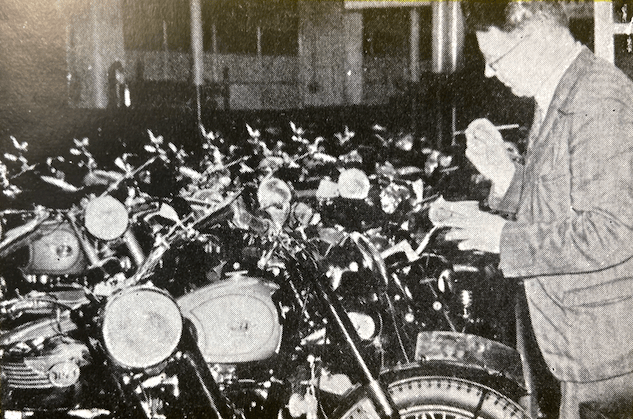 “DURING THE MONTH of October, 3,861 motor cycles, autocycles, cyclemotors and three-wheelers, valued at £438,634, were exported. Spare parts and accessories worth £136,869 were sent oversea in the same period. In the first 10 months of this year a total of 62,522 machines valued at £7,053,197 and spares worth £1,978,944 have been exported.”