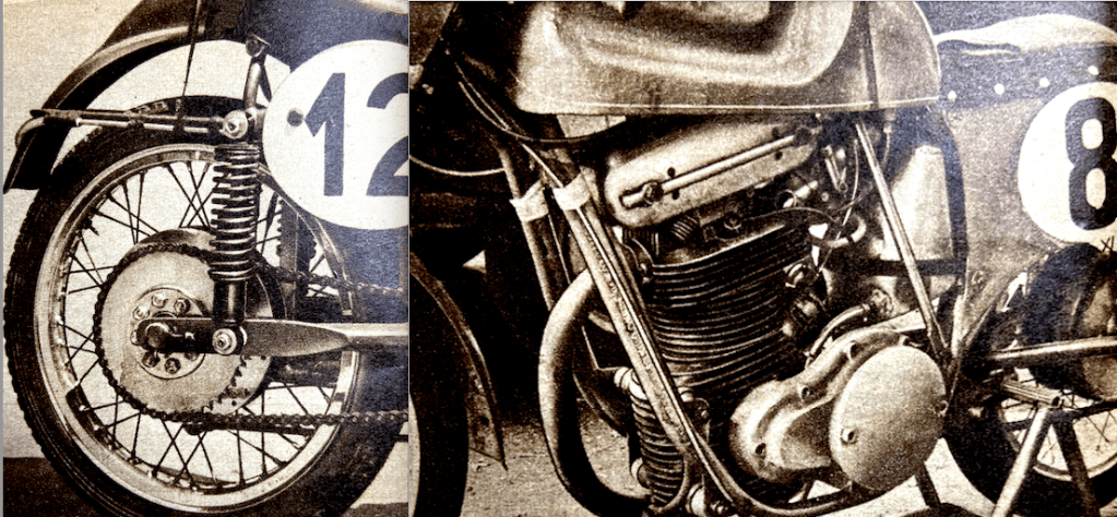 “FIRST MAN HOME and winner, Geoff Duke, said he had had a trouble-free run as far as his machine was concerned. The Norton had been running happily throughout, and Geoff thought that, if necessary, he could have driven it slightly harder. He had, however, been bothered from the end of the first lap with cramp in the right leg. Reg Armstrong, who finished second, reported that everything had gone like clockwork. He had had no worries and the machine had, in his own words, ‘gone like a bird’. Third man, Rod Coleman, also said he had had no worries over the machine. The AJS had run perfectly throughout. He had experienced a little excitement on Lap 2, however, when motoring through Laurel Bank at a speed in excess of 80mph—he had got into a rear-wheel slide. Fortunately he was able to stay in command of the machine—after wearing out a certain amount of boot leather!”