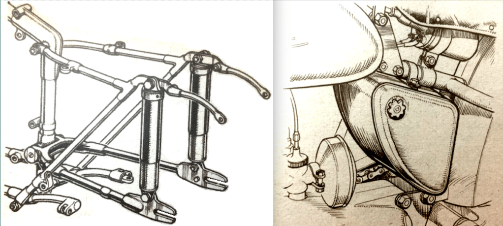 THE NEW SCOOTER sector was booming but Lambretta decided to branch out with a Grand Prix racer. Designed by Pier-Luigi Torre, the 250 Lambretta featuring a 247cc (54x54mm) dohc 90° transverse V-twin lump producing 29 horsepower at 9,000rpm and a top speed of 106mph. A five speed box transmitted power via a shaft. The racer’s only outing was at Locarno where it was on course to finish second, but didn’t finish.