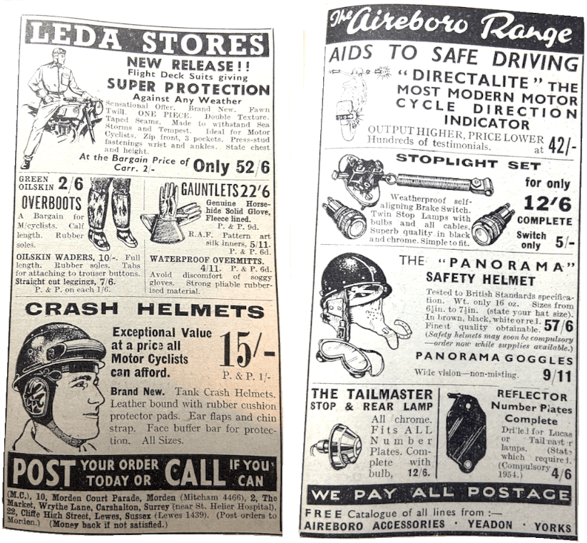 “LISTENERS TO THE broadcast on road safety given on January 19 by Mr Gurney Braithwaite, Parliamentary Secretary to the Ministry of Transport, were left with the impression that the Government intends to do all that ties within its power to assist the Coronation year campaign to reduce the accident rate…Yet within 24 hours of making his moving appeal to motor cyclists to wear protective helmets, Mr Braithwaite heard the Chancellor of- the Exchequer decline to exempt such headgear from purchase tax…The lame excuse put forward by Mr Butler was that helmets must be classed as protective clothing…[However] no trouble was experienced by Treasury officials in making protective helmets designed for miners and quarrymen exempt from purchase tax. Many miners and quarrymen ride motor cycles; surely it cannot seriously be argued that protection for their heads is of greater importance when they are at work than when they are going to and from work? Yet that is the implication in the Treasury’s ruling, which makes one type of helmet subject to tax and the other type exempt. Hair-splitting is a pastime beloved of bureaucrats, but when it may involve head-splitting the game becomes a dangerous one. The skull of a miner is neither more nor less valuable than the skull of a motor cyclist, but at present the helmet designed to save the latter from serious injury ranks, pari passu, in the eyes of the Treasury officials, with the grocer’s apron.”