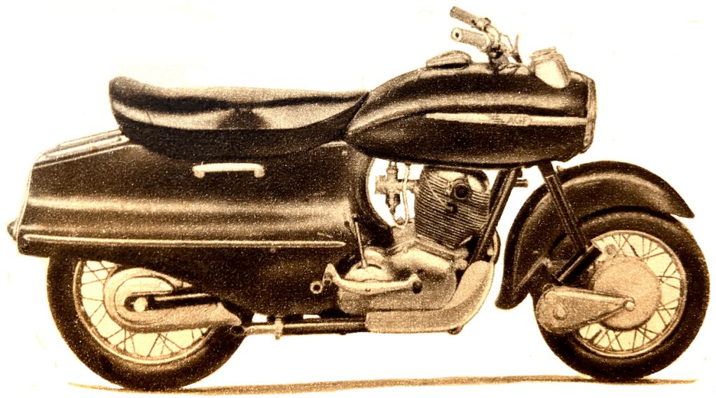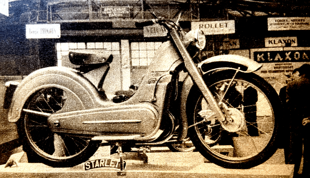 “THE FRENCH HAVE long had a functional outlook towards two-wheeled transport. Consequently, the trend towards ‘civilising’ two-wheelers, clearly discernible at the Paris Salon which opened last week, is both interesting and significant. As expected, the expansion of the scooter market in France continues. This fact has spurred some motor cycle manufacturers to make laudable efforts to extend the appeal of their products. They have tried, with success, to design ‘one-ness’ into their machines. Of these new approaches, the best reduces the exposed portions of the mechanism to two small, polished surfaces; yet full engine accessibility is given simply by slackening three knurled screws on each side. Equally important are the built-in legshields and footboards harmonising with the general design, and the very full mudguarding; these features provide a degree of cleanliness, protection and neat appearance hitherto unexcelled. Yet there is nothing which is not straightforward engineering practice. It has been shown that the British motor cyclist is too conservative to support unorthodoxy. Perhaps he was, even up to five years ago, but is he now? There is reason to think that the outlook of potential newcomers to motor cycling is less hide-bound by current thought among experienced riders. Since one of the oft-repeated objections to enclosure stresses magnification of mechanical noise, might not this objection be met by the use of plastic panels?”