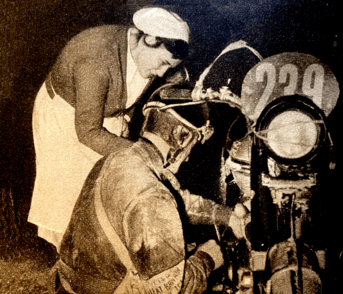 “IN REPLY TO Miss P King’s preference for riding breeches, experience has not yet proved to me that ‘Skirts are positively stupid’, either in summer or winter. From local opposition to general acceptance, I have maintained a preference for feminine apparel without the slightest inconvenience at any time—including the occasional skid and consequent separation of rider from motor cycle.