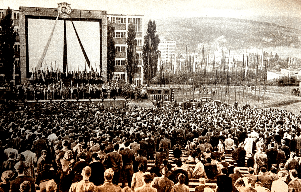 are impeccably turned out, in marked contrast to the 350cc BK IFA flat-twin two-strokes from Eastern Germany. Much more impressive machines from Germany are the Horex and Adler models. The Horex models are equipped for the first time with pivoted-fork rear springing of a type that does not interfere with rear-chain enclosure. As though by some miracle, the weather cleared on Monday. The sun shone, the temperature rose and the wind dropped. Weighing-in was completed by 5pm. Loud-speakers blared both speech and music to the strolling populace. A few minutes later the trial was officially opened at a public ceremony in the town’s open-air theatre. Riders gathered in groups under their national flags. There were speeches and translations, and introductions to important people. A flock of white doves was released. The ceremony ended with a programme of folk music. All was set for the morrow and the gruelling days ahead. Tuesday—First Day: A Scare for Viney. Soon after dawn, the sun was bathing the valley of the Dřevnice in brilliant light. The western slopes of the Carpathians lay under a golden haze. Competitors’ spirits were high as they made their way to the starting area, for the weather forecast when they had arrived at Gottwaldov had been anything but encouraging. But all was not entirely well. The night had been cold and damp, and the temperature was still low at 6.45am when the first man collected his machine from the closed control. Engines literally dripped with dampness from condensation. It seemed more than likely that starting troubles would be encountered. Almost the entire population of Gottwaldov had turned out to see the competitors set off, and the scene in front of the control was like that for a classic road race rather than for a trial. No 1 was FH Whittle (598 Panther sc), doyen of British trials sidecar drivers.
