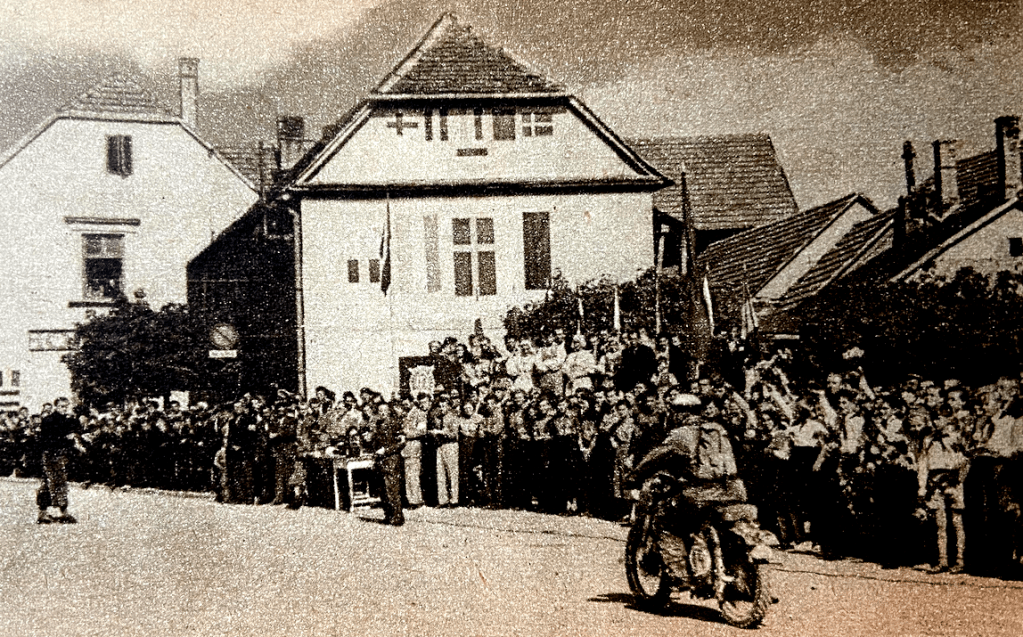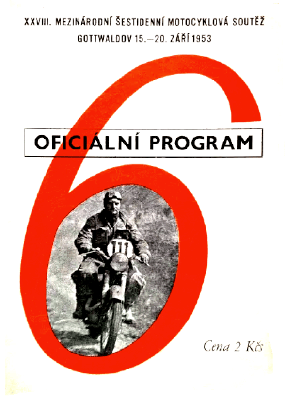 “THE CZECHOSLOVAK REPUBLIC sprawls lizard-like across the map of central Europe. Thirteen million people occupy an area about the size of England. Landlocked, its extreme length is 600 miles, and its width varies from 100 to 300 miles. Its capital, Prague, is situated mid-way between Moscow and Madrid, and between Stockholm and Rome. Its frontiers are mainly natural—mountains and rivers. In the midst of fine forests, spreading valleys and verdant plains, a world of folk-lore and quaint custom still lingers….There has never been a better organised International Six Days Trial than the 28th in the series which started in England back in 1913. Staged by the Czech Ustredni Auto-motoklub CRS, whose team won both Trophy and Vase in last year’s contest, the 1953 event took place ip Czechoslovakia from
