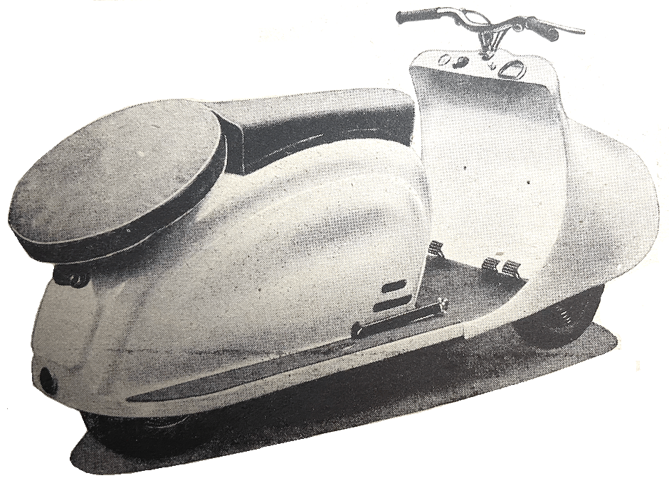 “THE FRENCH HAVE long had a functional outlook towards two-wheeled transport. Consequently, the trend towards ‘civilising’ two-wheelers, clearly discernible at the Paris Salon which opened last week, is both interesting and significant. As expected, the expansion of the scooter market in France continues. This fact has spurred some motor cycle manufacturers to make laudable efforts to extend the appeal of their products. They have tried, with success, to design ‘one-ness’ into their machines. Of these new approaches, the best reduces the exposed portions of the mechanism to two small, polished surfaces; yet full engine accessibility is given simply by slackening three knurled screws on each side. Equally important are the built-in legshields and footboards harmonising with the general design, and the very full mudguarding; these features provide a degree of cleanliness, protection and neat appearance hitherto unexcelled. Yet there is nothing which is not straightforward engineering practice. It has been shown that the British motor cyclist is too conservative to support unorthodoxy. Perhaps he was, even up to five years ago, but is he now? There is reason to think that the outlook of potential newcomers to motor cycling is less hide-bound by current thought among experienced riders. Since one of the oft-repeated objections to enclosure stresses magnification of mechanical noise, might not this objection be met by the use of plastic panels?”