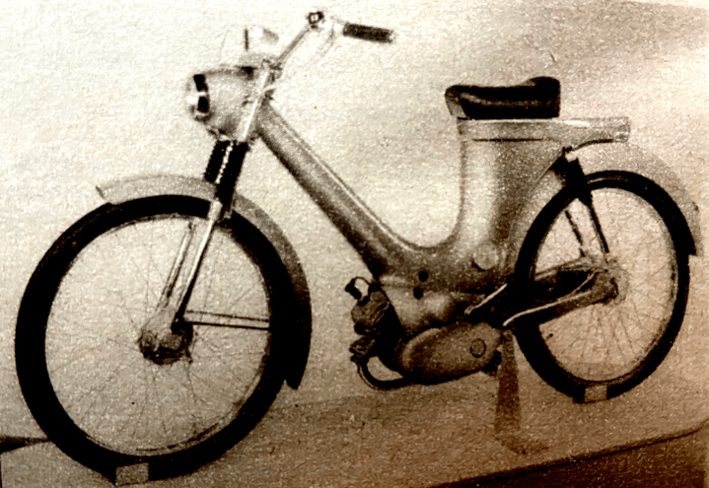 “AN INTERESTING PROJECT is in course of development by the Myford Engineering Co of Beeston, Nottingham. This concern manufactures, among other tools, the well-known ML lathe, and their plan is to supply part-finished components for a 50cc twin-cylinder two-stroke engine, enabling the owner of a Myford lathe not only to set himself a first-class practical lesson in machining, but to have, when the work is finished, a rather unusual type of power unit ready for attachment to his bicycle. Clearly, the cost of the end product, manufactured under such a do-the-work-at-home scheme, is likely to be but a fraction of the figure normally paid for a similar engine commercially produced and marketed.”