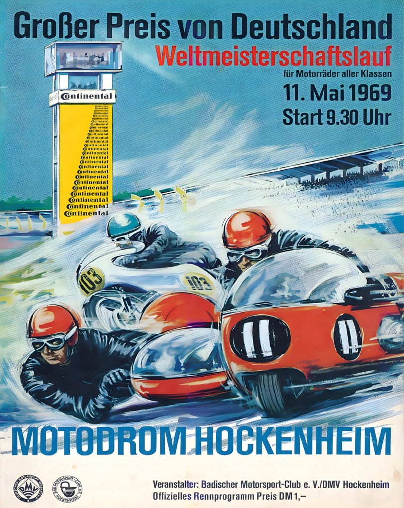 “REPEATING HIS EIFELTREFFEN form of the previous weekend, Karl Hoppe (Urs Metisse) dominated the 500cc class of the Austrian Grand Prix at Salzburg on Thursday. Not only was his race speed a record. He also shaved 0.7sec off Giacomo Agostini’s record lap made on the MV four in 1967, and must now be considered a leading contender for 500cc honours in the classics…Under ideal racing conditions the 125cc class set the ball rolling with a fierce battle between last year’s winner Lazlo Szabo (MZ) and Silvano Bertarelli on a factory five-speed Aermacchi two-stroke. The little air-cooled Italian stroker…seemed a match for the swift MZ rotary-valve six-speeder. Not far behind them till he struck trouble was the Finn Jarno Saarinen on his very neat and fast Puch Tunturi…Having his first big race on the Eddie Crooks Cobra Suzuki, Frank Perris was dogged by ignition bothers and never really got going before being forced to retire. But in the 250cc race he led from the start until three laps from the end.Then his Crooks Suzuki lost an exhaust tail pipe and 1,000rpm. That let Ralph Bryans on a Honda four borrowed from a museum into first berth…Rain on one part of the circuit, which comprises two legs of an autobahn, caused havoc among the midfield men in the 350cc race…veteran Lewis Young (Aermacchi) showed all the youngster’s the way by grabbing a secure second spot ahead of Ulsterman Phil O’Brien (Aermacchi)…Young’s chance of a win evaporated when last year’s winner, the Czech Bohumil Stasa (CZ) slipped past into the lead just before the finish…The gearbox of Helmut Fath’s four-cylinder Urs failed in the last practice session and he arranged to use the gears from Hoppe’s Urs. So the organisers obligingly leapfrogged the sidecar race over the 250 and 350cc races to last on the programme to give the world champion a chance to fit the replacements. Fath repaid by a dazzling play of speed, shaking off ex-champ Klaus Enders (BMW) to win easily…with the rest of the field trailing far behind.”