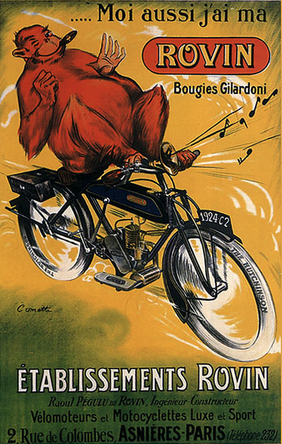 From a French calendar: “For a good ‘workout’. A motorcycle is a bicycle that has been fitted with an engine to make a lot of noise and keep it running. In this case it can be pushed along laboriously, making the sport all the more enjoyable.”